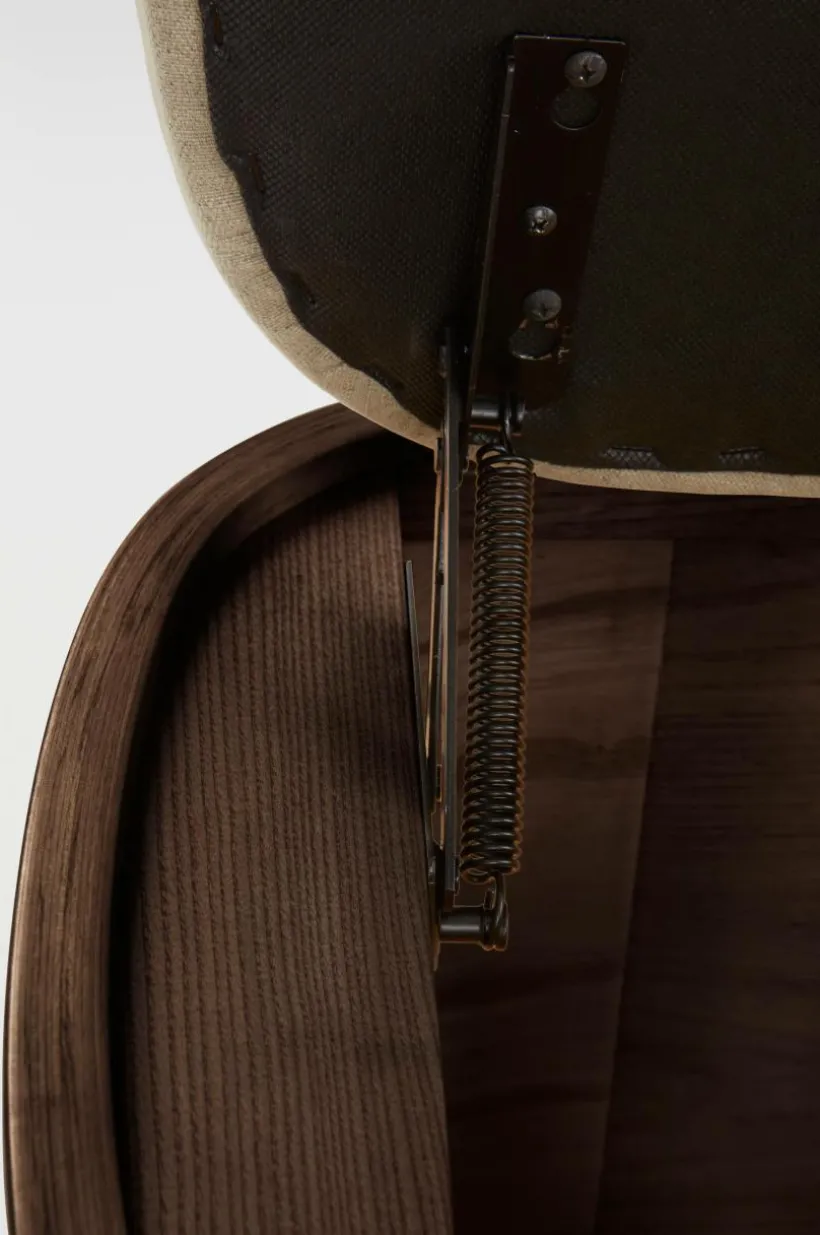 Material: Plywood och askfaner. Dyna: klädsel 100% polyester, stoppning skum.
