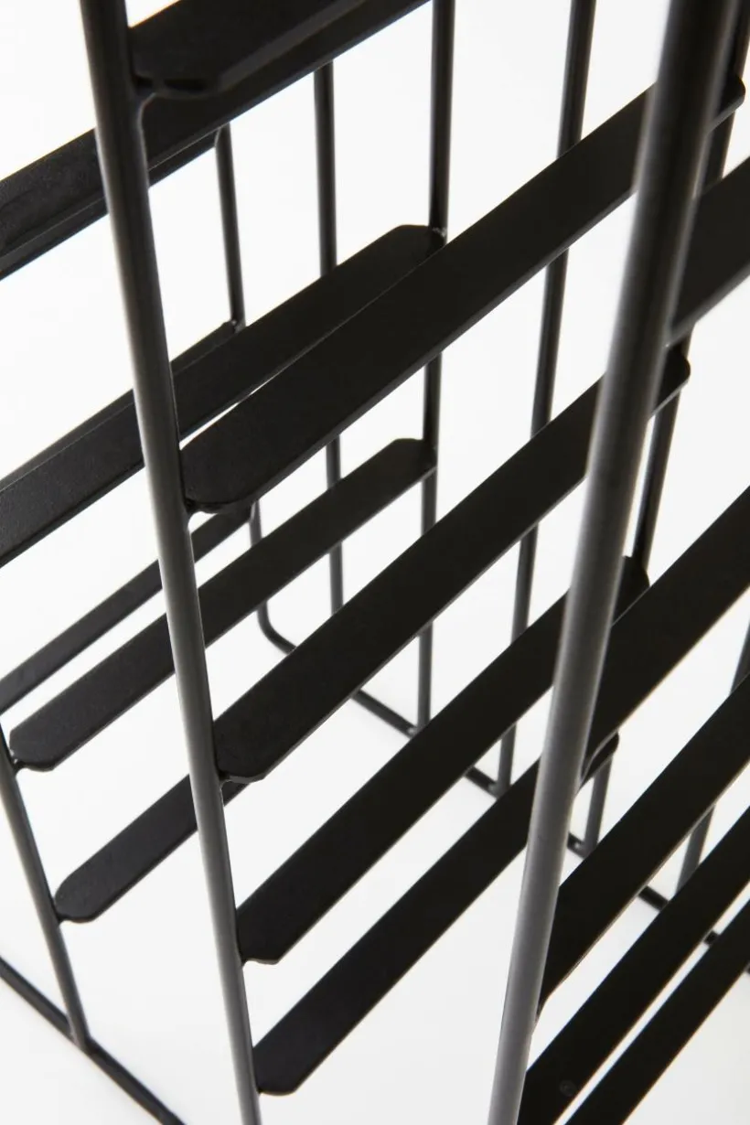 Vinställ av järn med pulverlackerad yta. Vinstället har rak och rationell form, det rymmer arton flaskor och är snyggt även när några flaskor försvunnit. Du placerar vinstället där du vill ha det utan fastsättning och du kan enkelt flytta det.
