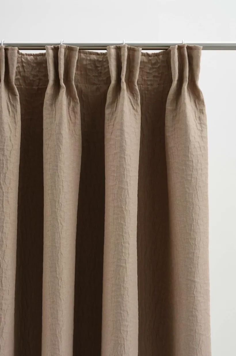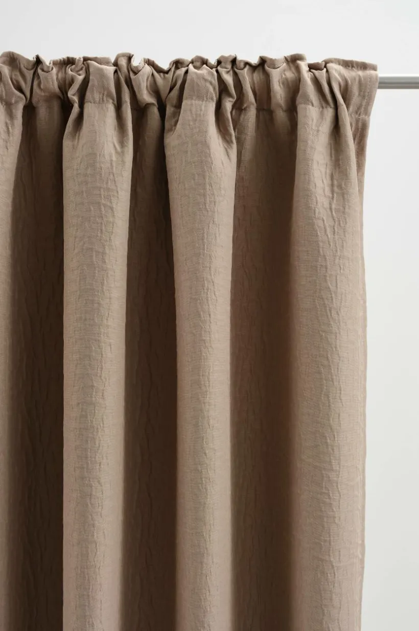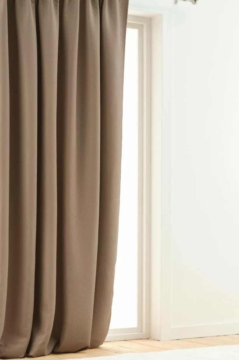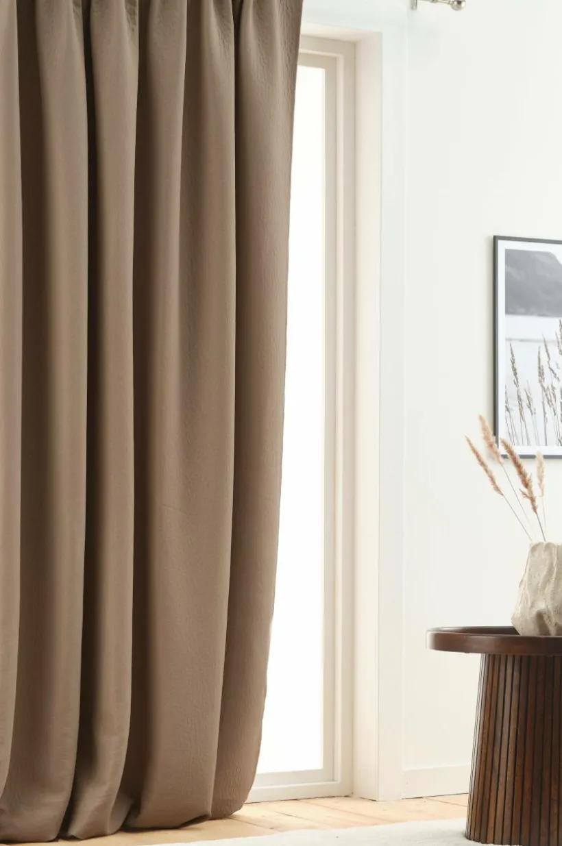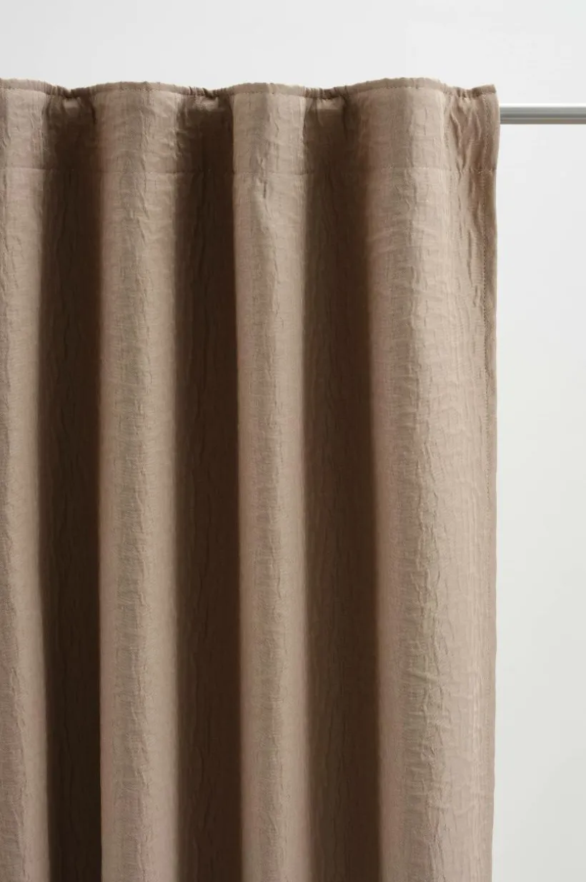 En gardinlängd för mörkläggning, tillverkad av polyester. Gardinen är tätvävd så att beläggning på baksidan inte behövs. NOCTIS har en bubblig yta och faller fint när du hänger upp den. Denna modellen är extra bred och ger dig fina möjligheter att få en mörk behaglig natt, även med riktigt stora fönster. Dagtid drar du den breda längden åt sidan och får in ljuset. Observera att de olika färgerna varierar i mörkläggning. Multifunktionsbandet upptill ger dig möjligheten att variera din upphängning med dold hälla, kanal samt veckband för fingerkrokar.