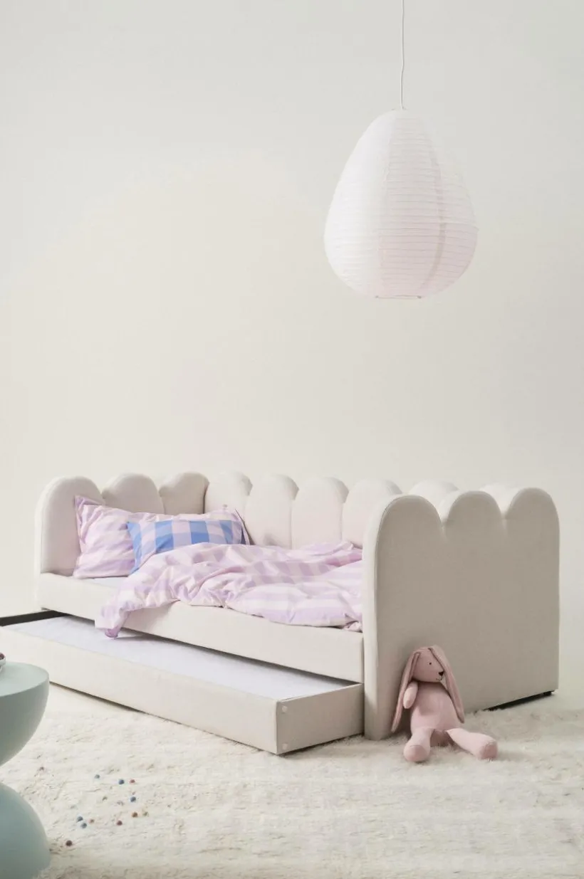 Barnsäng med samma funktion som en bäddsoffa. Du kan alltså dra ut en extrasäng och bädda till barnets kompis. OLEMA är en perfekt kompissäng helt enkelt. Sängen har tre mjukt vadderade sidor som gör den mysig och ombonad att sova i. Bäddar du sängen med överkast så fungerar den som soffa på dagen perfekt för en liten sagostund.