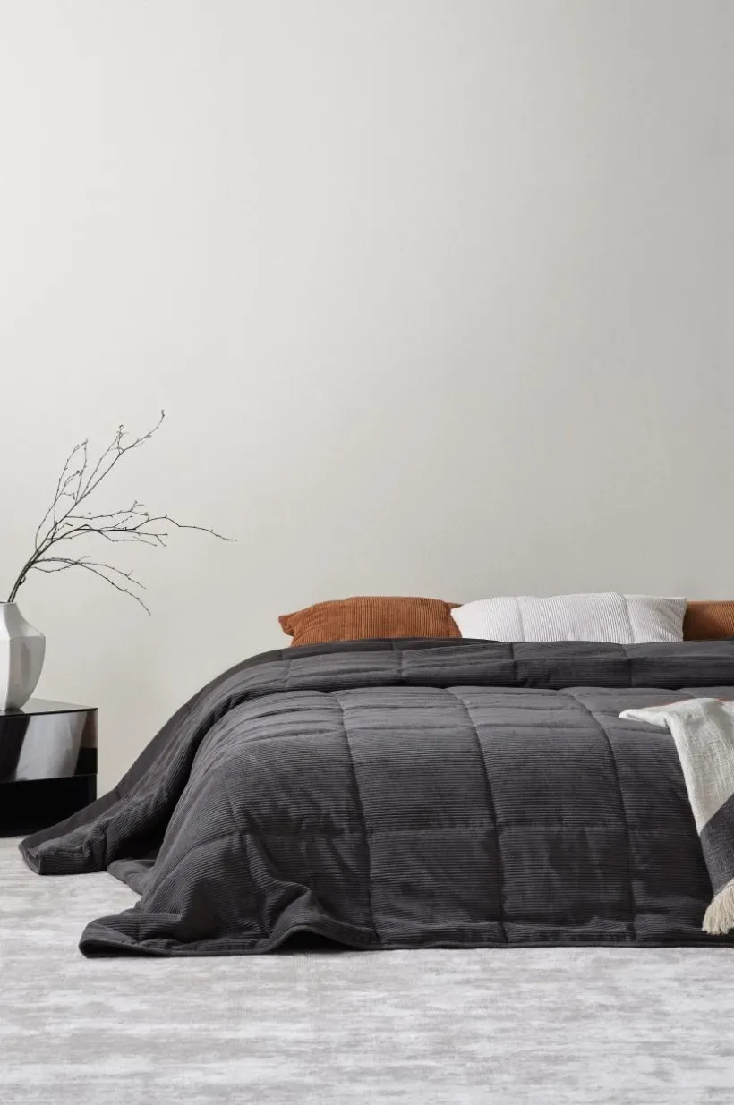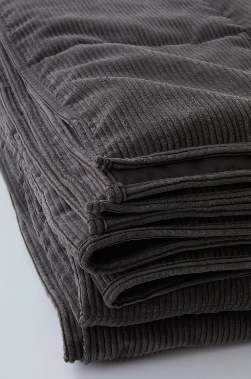 Överkast av enfärgad manchester med quiltstickning. Överkastet är smidigt och lätt att hantera. Det är fodrat med ett ljust, vävt tyg och har fållad kant runt om. Tyget är av polyester med polyamid inblandat och den lätta vadderingen är av polyester vilket även fodret är. Kuddfodral ingår ej.