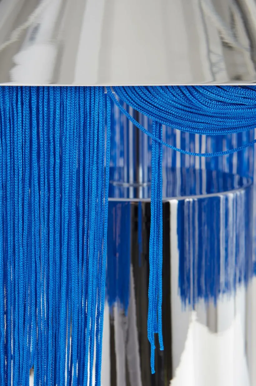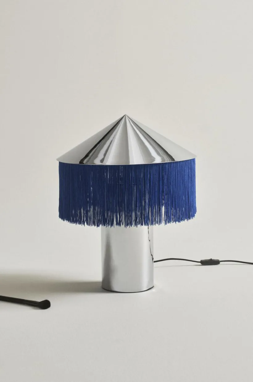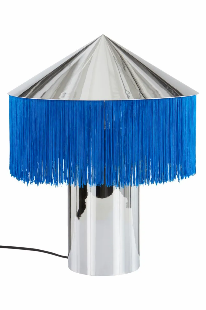 Bordslampan REGENCY är en oerhört läcker bordslampa som väcker uppmärksamhet. Lampfot och skärm är av metall som krönts med en lång franskant runt skärmen. Lampan får exklusiv känsla med textilsladd som matchar fransen, strömbrytaren sitter på sladden. Väggkontakten är Europa-modell, det vill säga platt och med tunnare stift (4 mm). Lampan är ojordad, klass 2.
