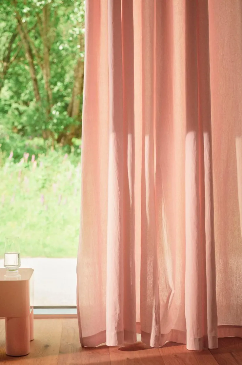Tips/råd: Förläng livstiden på gardinerna genom att dammsuga dem försiktigt med mjukt munstycke med jämna mellanrum. På så vis undviker du att damm och smuts tränger in i tyget. Dessutom behåller dina gardiner färgen längre. Fläckar tas bort med varmt vatten på en ljus trasa. Dutta fläcken försiktigt med trasan, steama och låt torka.