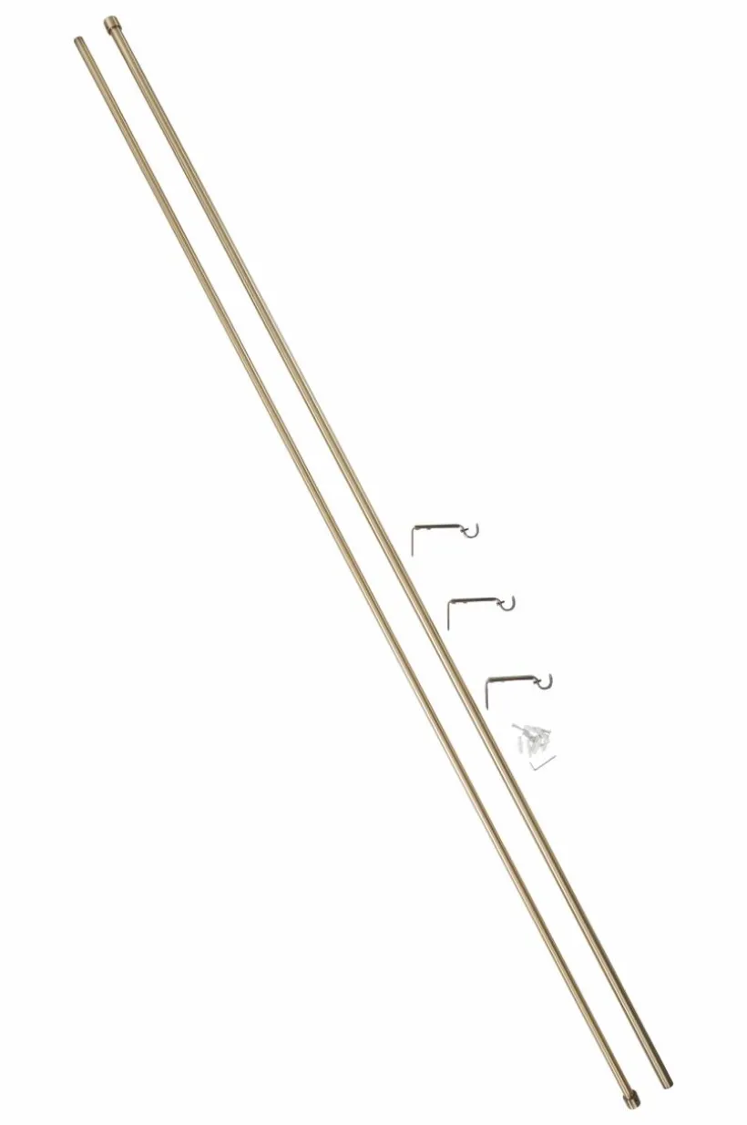 Storlek: ø 19 mm. Längd 210-380 cm. Väggavstånd 10-15 cm. Fästets bredd 16 mm.