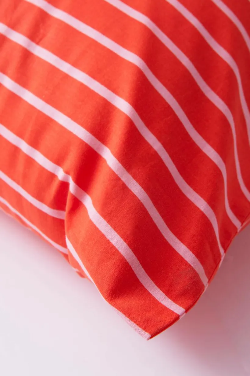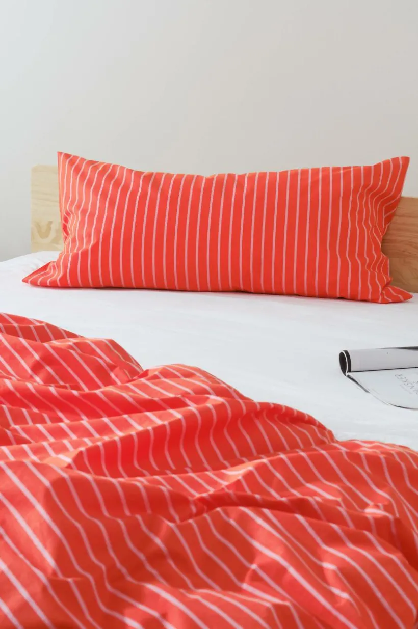 SIMA örngott tillverkat av ekologisk bomull. Tryckta ränder i krispiga färger. Förvandla ditt sovrum till en vilsam plats.