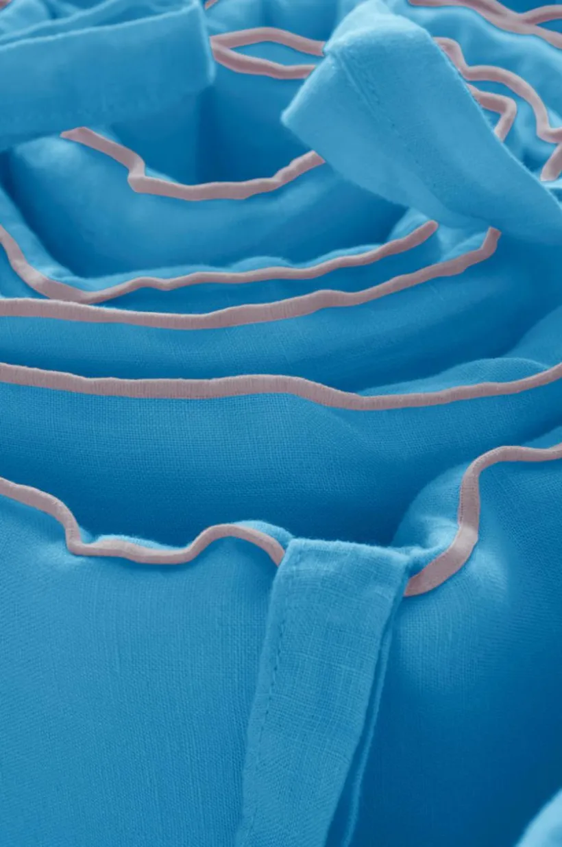 Spjälsängsskydd med yttertyg av lin som tvättas för en extra mjuk känsla. STICH står för schyssta sängkläder i ett tidlöst material. Linnetyget är enfärgat och den snygga overlocksömmen runt om är kontrastfärgad i en pigg färg. Lin är ett fint naturmaterial med speciella egenskaper och härlig känsla. När linet tvättas får det ännu mjukare struktur som är behaglig mot huden. Fyllning av polyester med mjuk skumgummikärna.