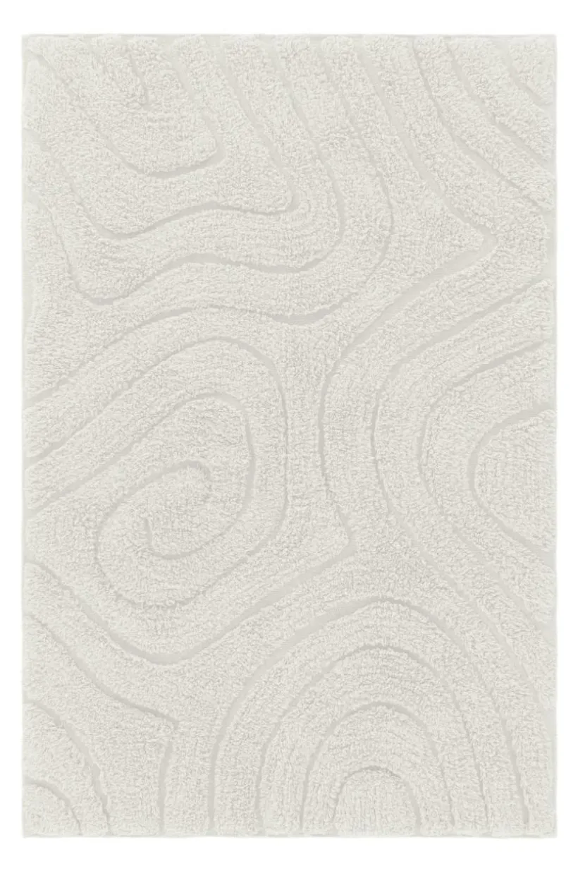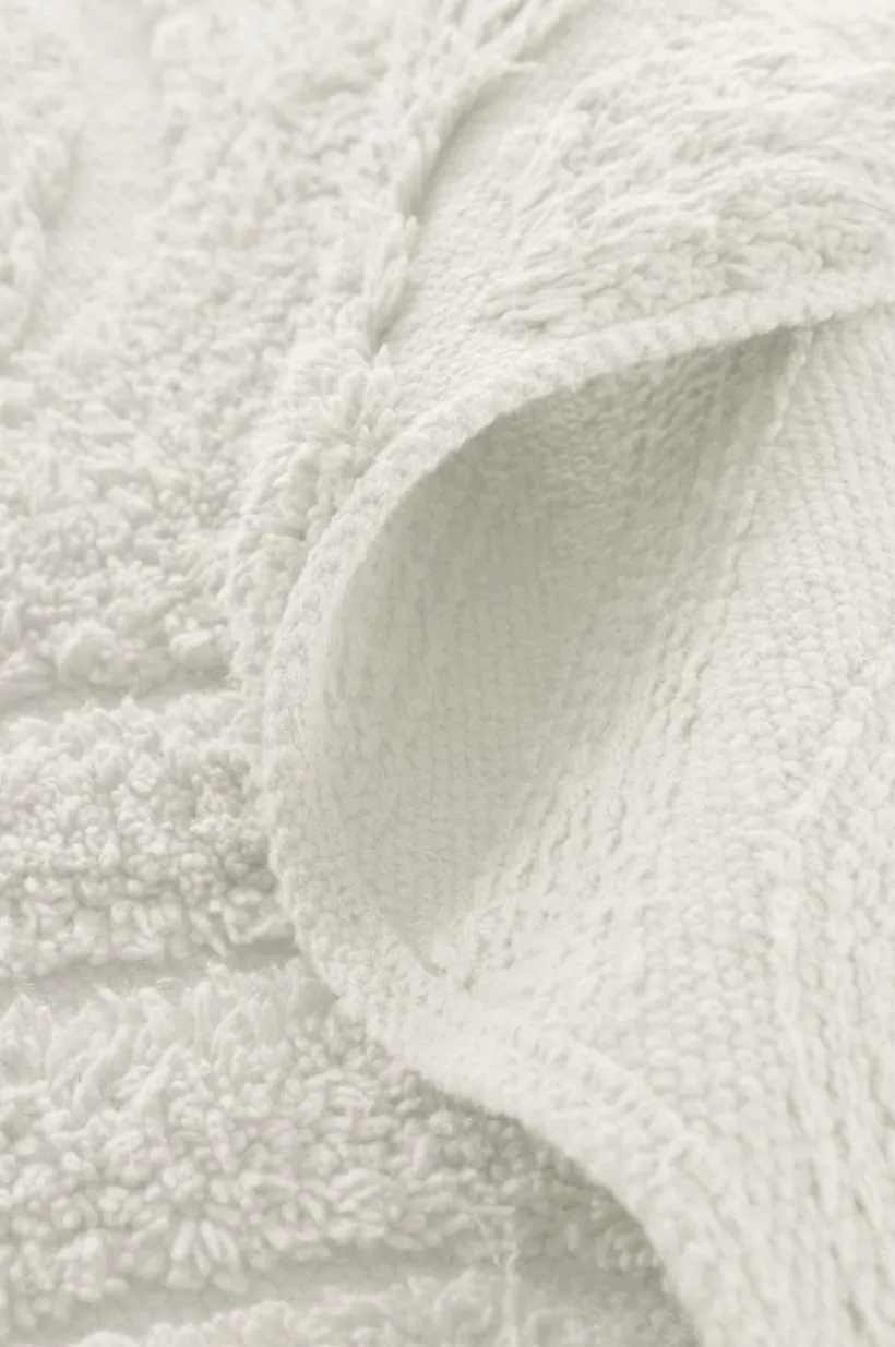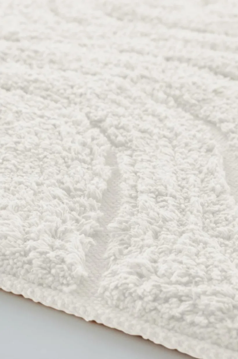 Mjuk, tuftad badrumsmatta av behaglig bomull. Mattan är enfärgad med böljande mönster som skapats av hur luggen knutits. Lugghöjd 1 cm. 1600 g/m².
