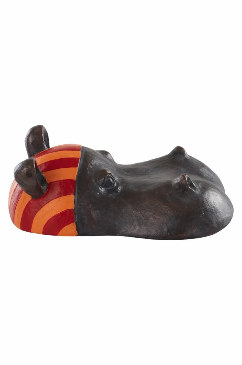 Handgjord skulptur av polyresin. Detaljer har förfinats för hand och skulpturen är handmålad. SURFACE är en ljuvlig flodhäst som håller näsan ovanför vattenytan, en skultpur som får en att le. Passar lika bra inne som ute.