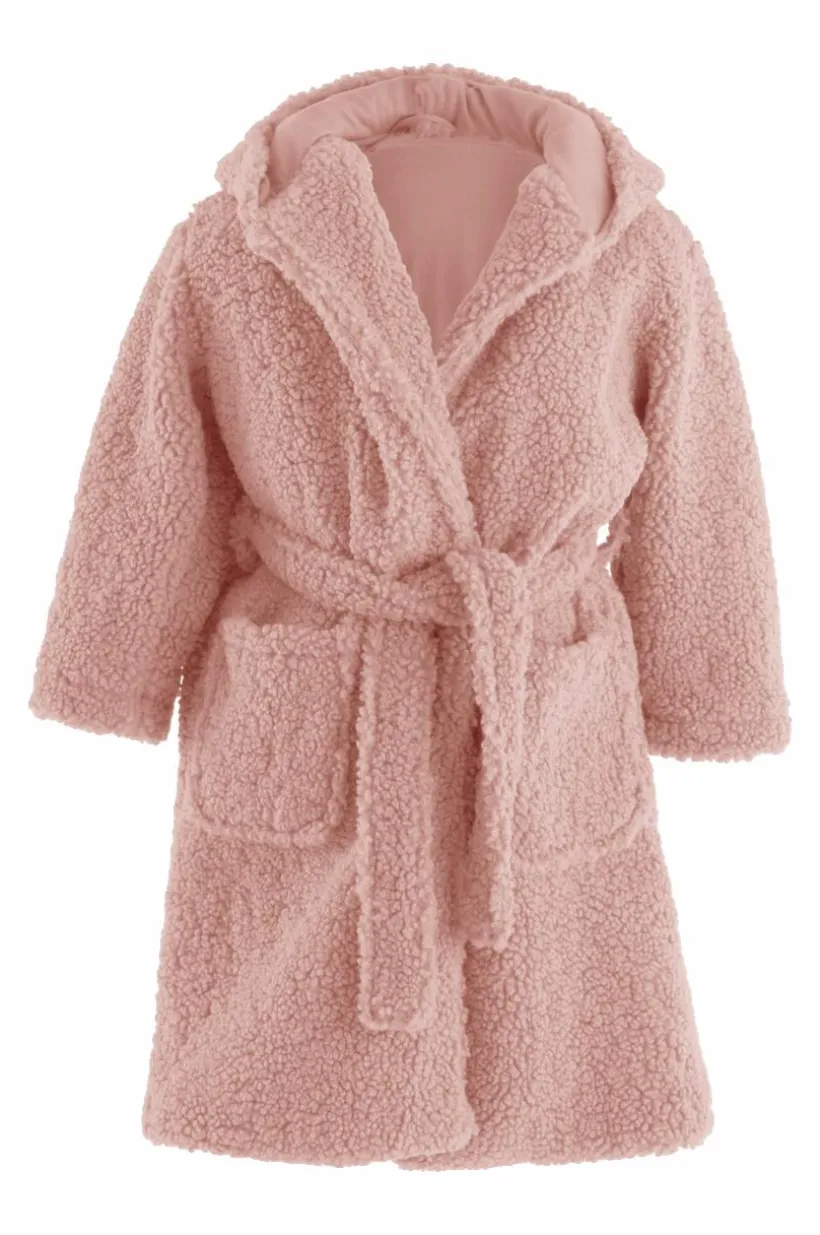 Badrock i underbart varm och gosig teddy av polyester med mjukt bomullsfoder. Den mysiga badrocken har huva, två framfickor och knytskärp. Huvan har dessutom söta små kaninöron.