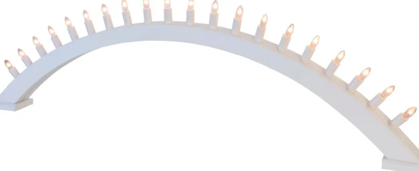 Mått: Bredd 105 cm. Djup 7 cm. Höjd 30 cm. Träljusstake Kulle 20 ljus. 230 V. Sladd 1,8 m.