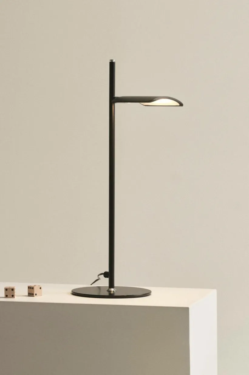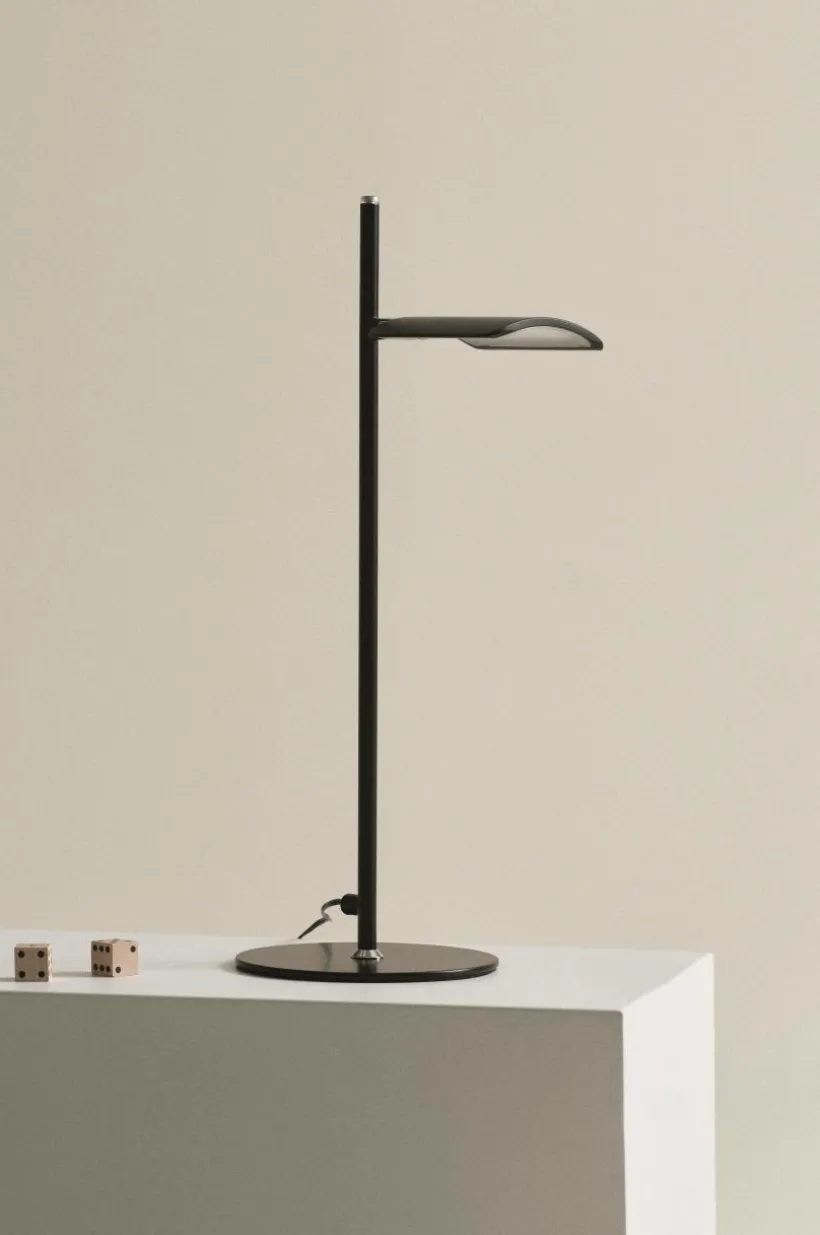 Bordslampa av metall med integrerad LED-belysning. VENETA är en serie lampor i modern, enkel och avskalad stil, som är lätta att placera tack vare sin smäckra form och diskreta utformning. Lampan är dimbar och strömbrytaren har touch-funktion. PVC-sladd.