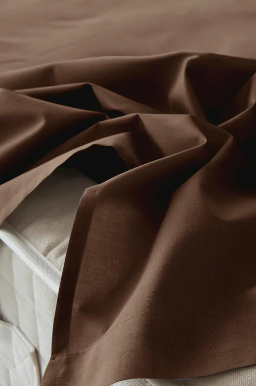 Enfärgade lakan i ekologisk bomull. Att bädda i ekologisk bomull är luftigt, mjukt och lättskött. Perfekta sängkläder för stor som liten, för familjen på landet och för singeln i stan. Trådtäthet på 144 tc. (Trådtätheten talar om antalet trådar, thread counts, per kvadrattum i ett tyg. Ju högre trådtäthet desto högre kvalité).