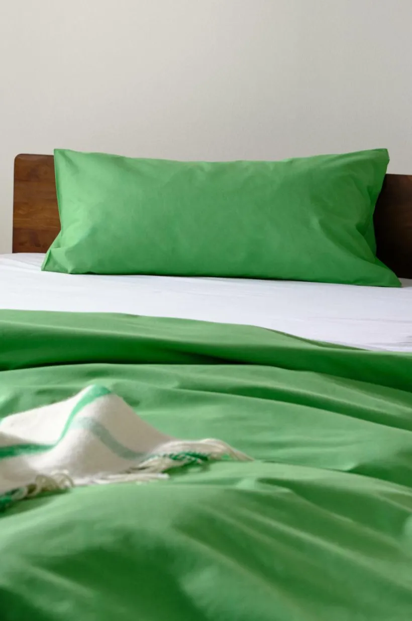 Enfärgat örngott i ekologisk bomull. Att bädda i ekologisk bomull är luftigt, mjukt och lättskött. Perfekta sängkläder för stor som liten, för familjen på landet och för singeln i stan. Trådtäthet på 144 tc. (Trådtätheten talar om antalet trådar, thread counts, per kvadrattum i ett tyg. Ju högre trådtäthet desto högre kvalité).