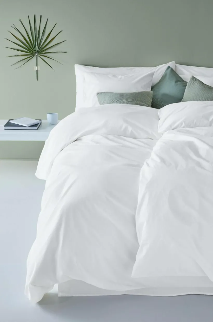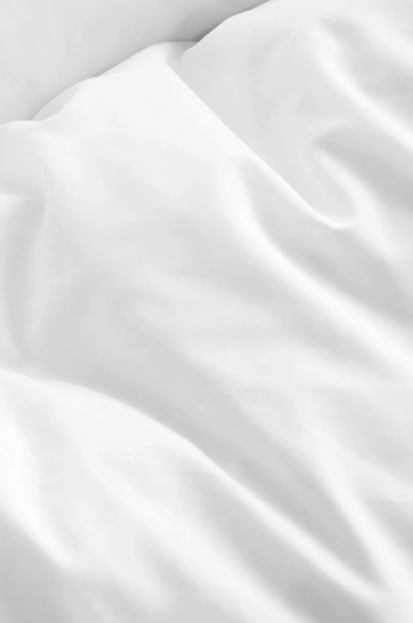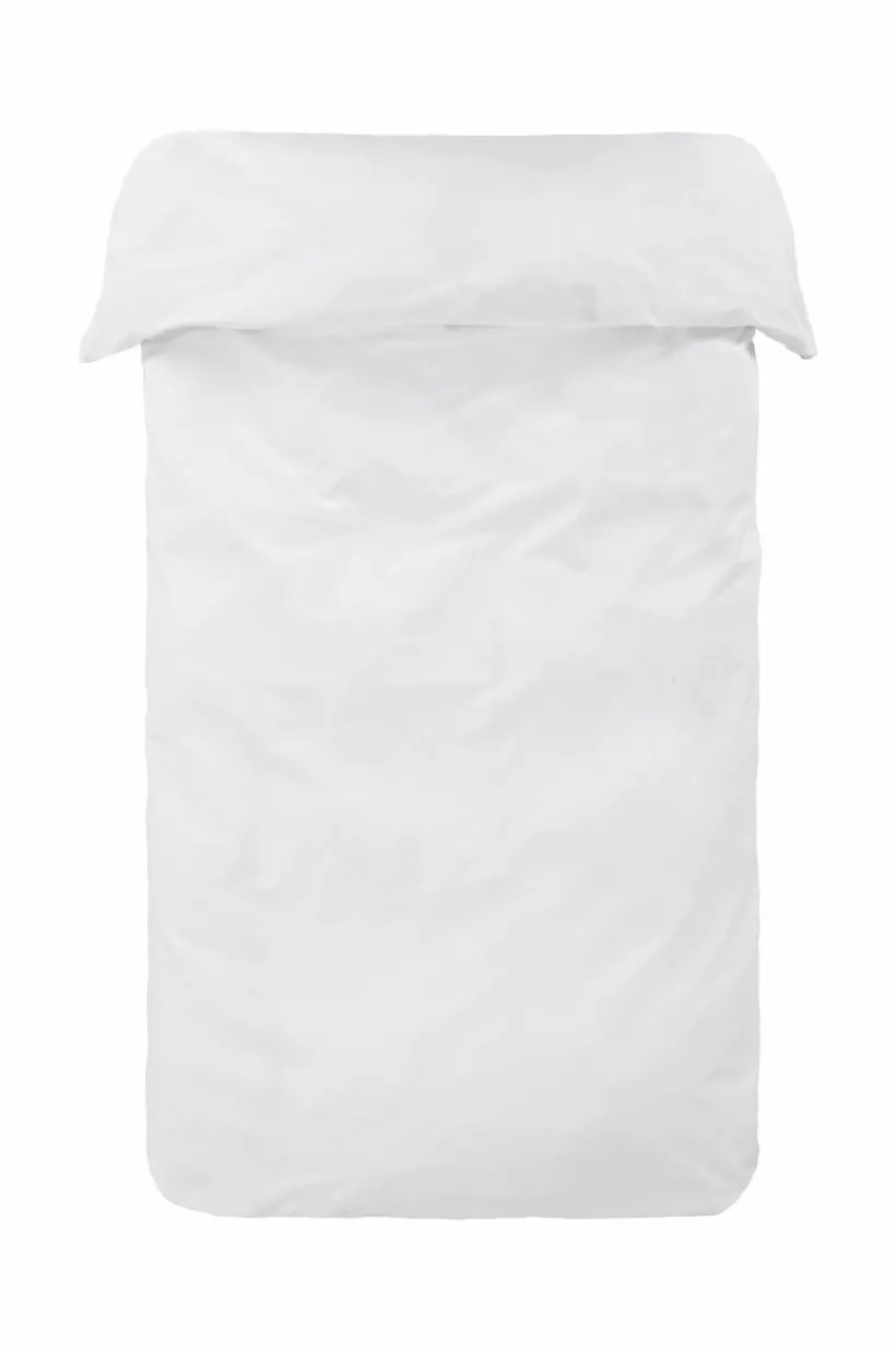 Enfärgat påslakan av ekologisk bomull. Trådtäthet på 144 tc. (Trådtätheten talar om antalet trådar, thread counts, per kvadrattum i ett tyg. Ju högre trådtäthet desto högre kvalité).