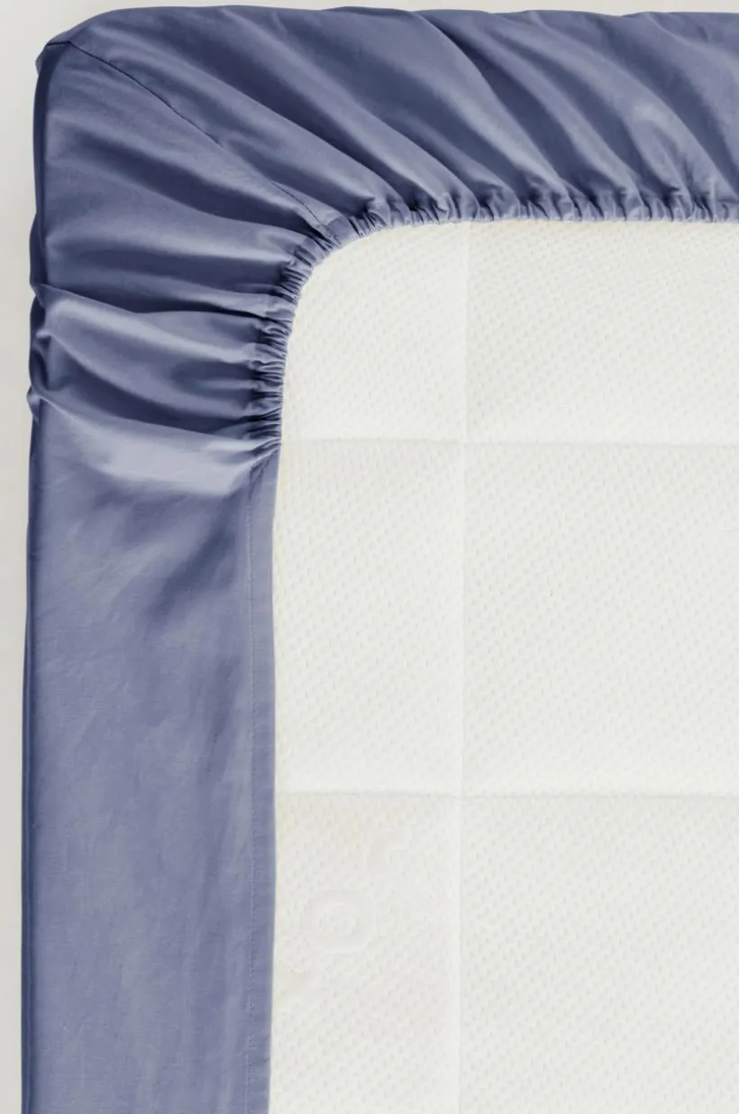 Enfärgat dra-på-lakan i underbar percale av ekologisk bomull med resår i hörnen. Percale är ett extra mjukt och behagligt tyg som vävts med tunna, fina bomullstrådar. Den elastiska kanten gör att lakanet sitter bra på madrassen. Trådtäthet på 200 tc. (Trådtätheten talar om antalet trådar, thread counts, per kvadrattum i ett tyg. Ju högre trådtäthet desto högre kvalité.)