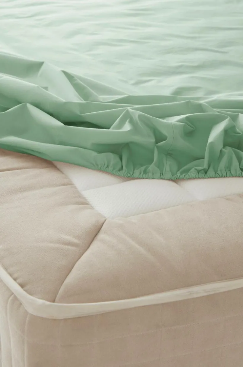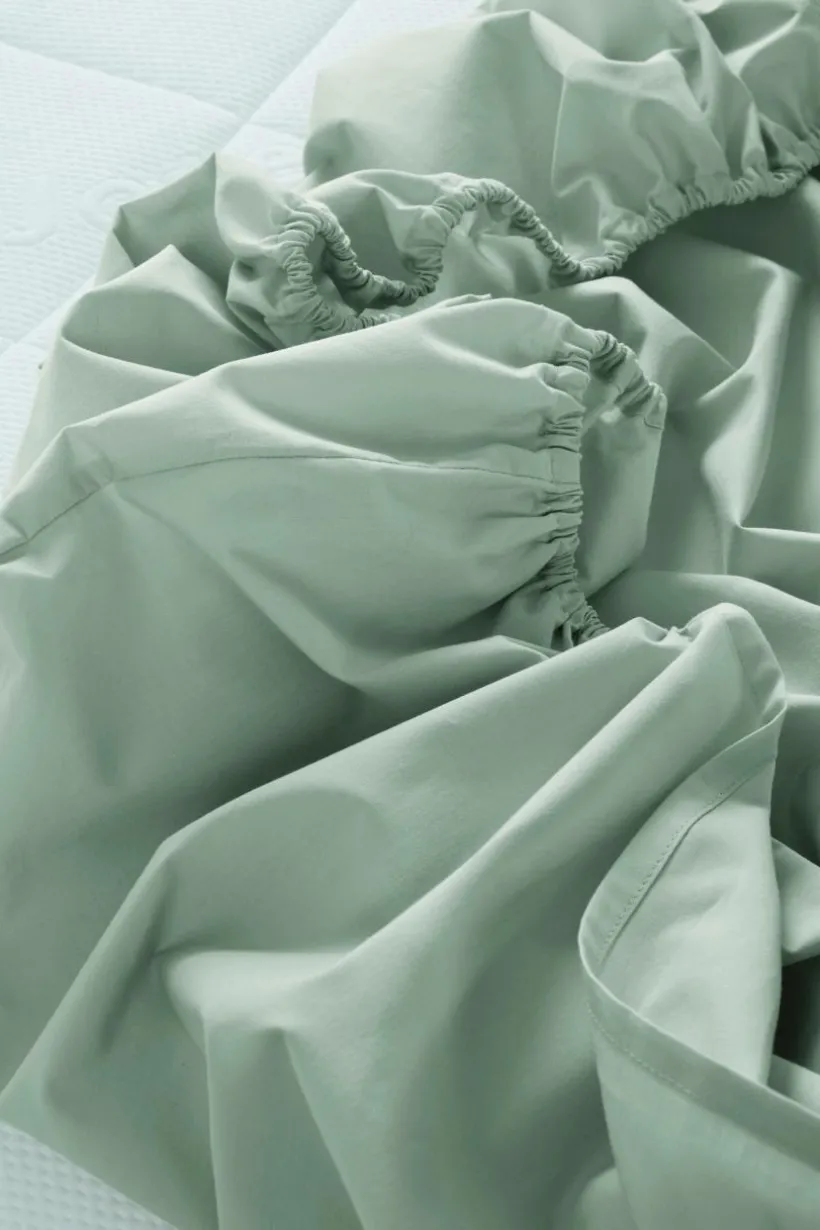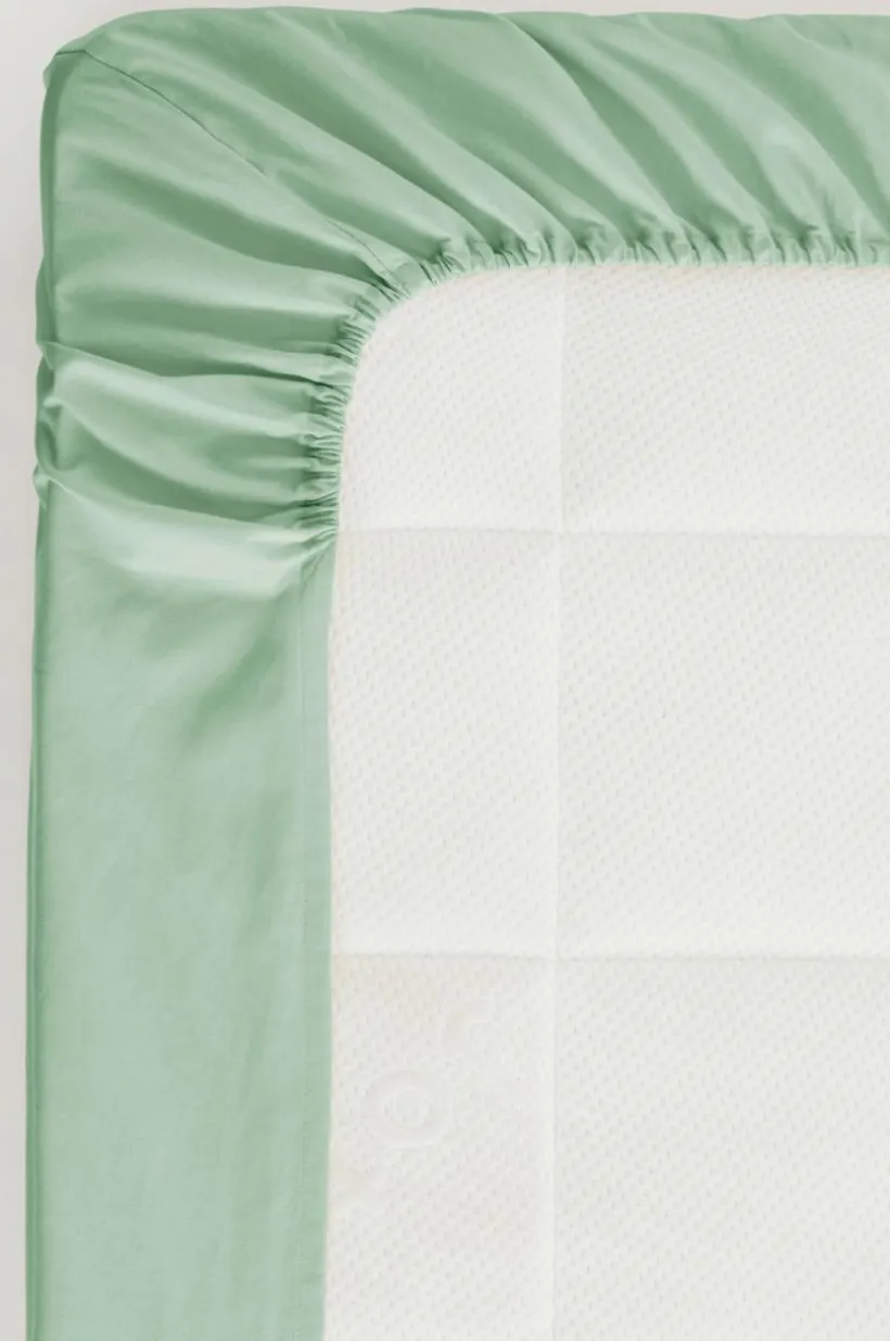 Enfärgat dra-på-lakan i underbar percale av ekologisk bomull med resår i hörnen. Percale är ett extra mjukt och behagligt tyg som vävts med tunna, fina bomullstrådar. Den elastiska kanten gör att lakanet sitter bra på madrassen. Trådtäthet på 200 tc. (Trådtätheten talar om antalet trådar, thread counts, per kvadrattum i ett tyg. Ju högre trådtäthet desto högre kvalité.)
