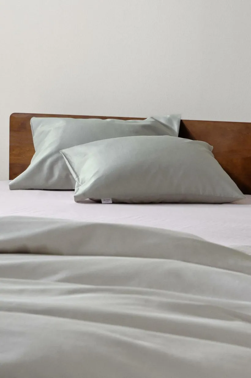 2-pack enfärgade örngott i exklusiv satin av ekologisk bomull. Satin är en vävteknik som ger ett underbart slätt, mjukt och lent tyg. Bomull som vävs med denna teknik ger ett tyg med fin lyster och lyxig känsla. Trådtäthet på 300 tc. (Trådtätheten talar om antalet trådar, thread counts, per kvadrattum i ett tyg. Ju högre trådtäthet desto högre kvalité.)