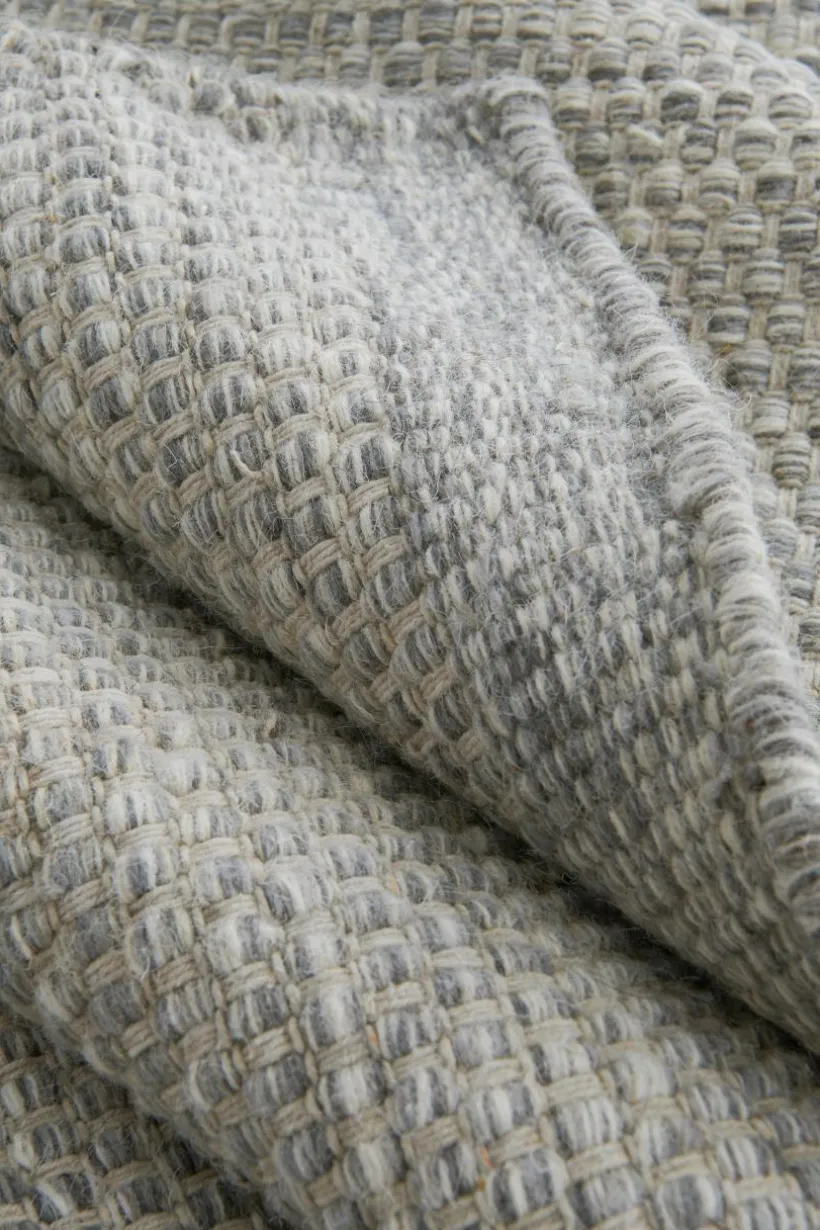 Handgjord matta i fin ull i kombination med bomull. Mattan är slätvävd med en lite strävare känsla och har en stilren design som passar in i många olika stilar och trender. En diskret rand längs kortsidan fångar blicken och mattan blir en lugn och balanserad bas i ditt rum. Ullen i mattan kommer från gårdar där fåren lever ett liv som är naturligt för arten och i samklang med naturen.