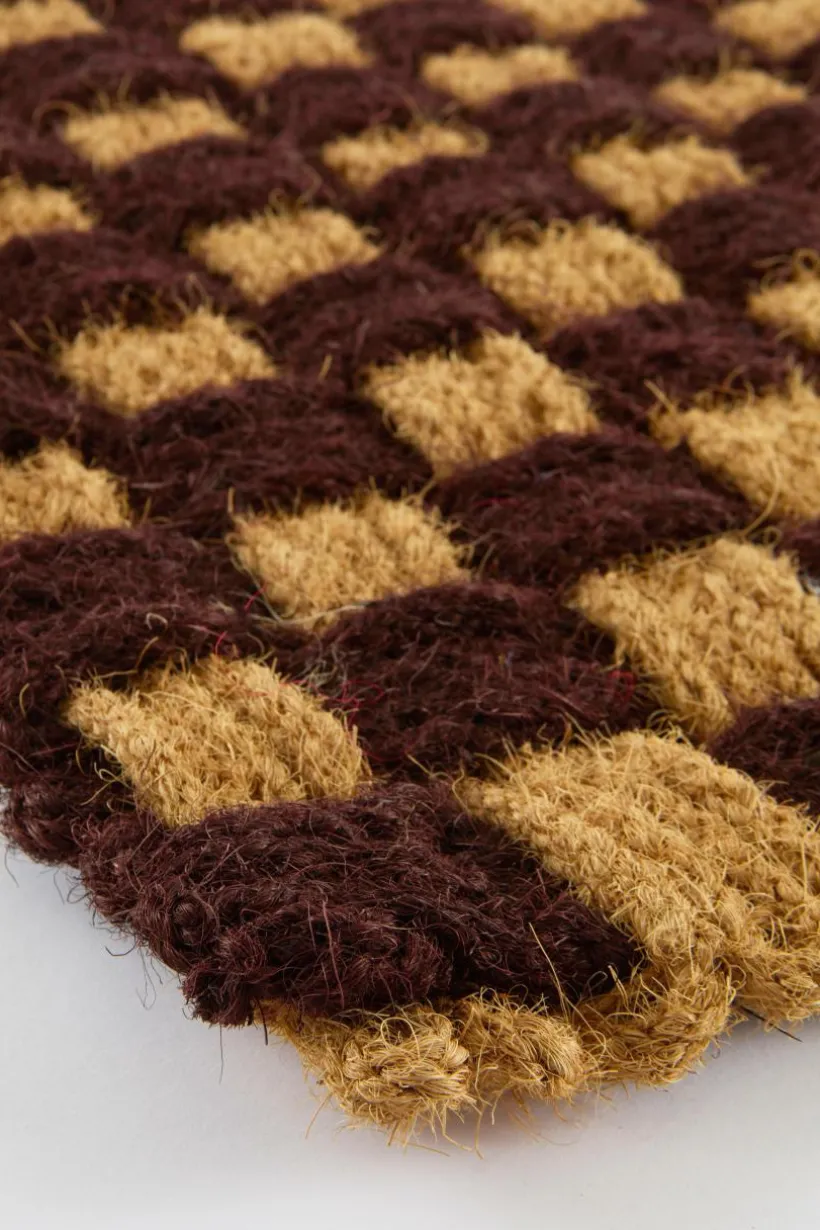 Dörrmattan ZINNIA är tillverkad av naturlig kokos och ger ett varmt välkomnande till alla utomhusmiljöer. Dess strukturerade rutmönster i bruna och gyllene nyanser ger en rustik charm samtidigt som den effektivt fångar upp smuts och fukt. Denna slitstarka matta är perfekt för att säkerställa rena entréer och är utformad för utomhusbruk och förbättrar din tröskel med både funktion och stil. Gör ditt hem inbjudande redan från första steget.