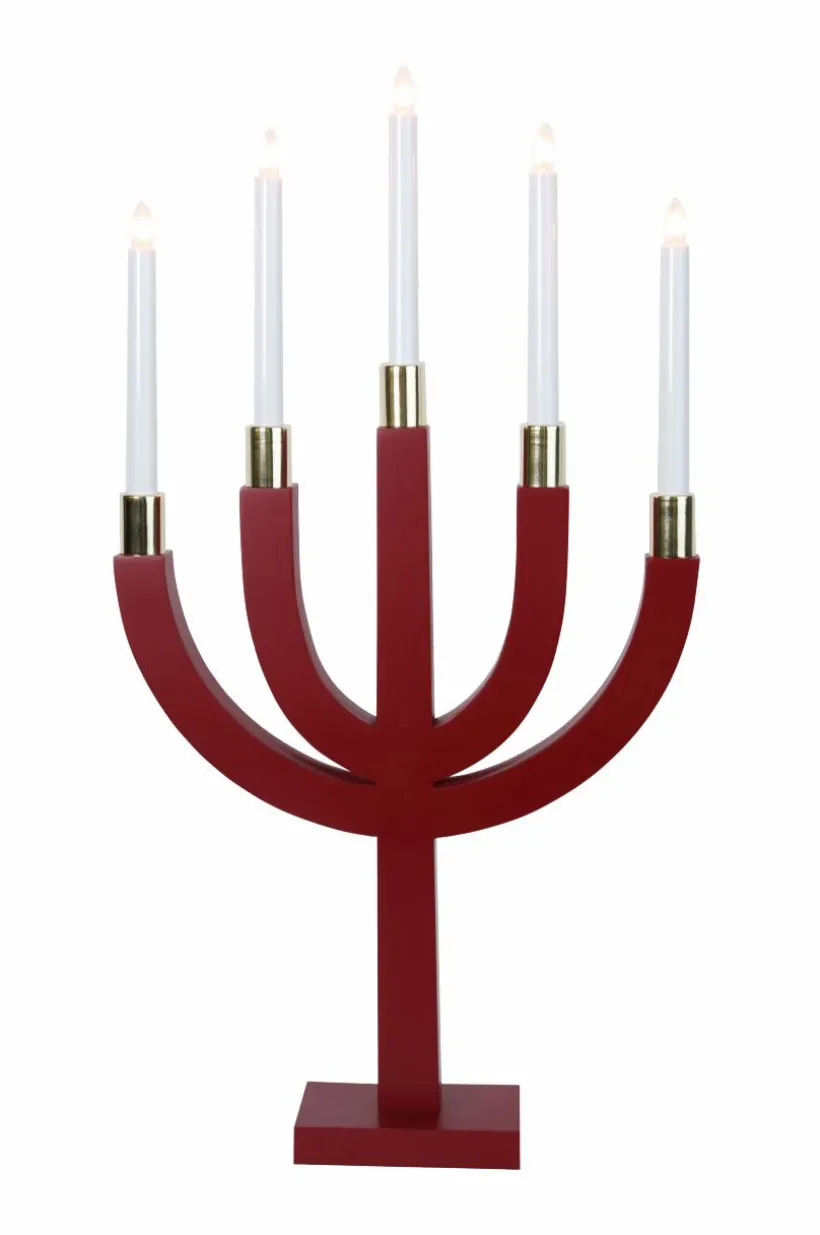 Ljusstake av trä och metall med 5 ljus. Höjd 67 cm, bredd 35 cm, djup 8 cm. Sladd med strömbrytare, sladdlängd 1,8 m. Sockel E10, lampor medföljer. Ljusmanschett köpes separat och ingår ej.