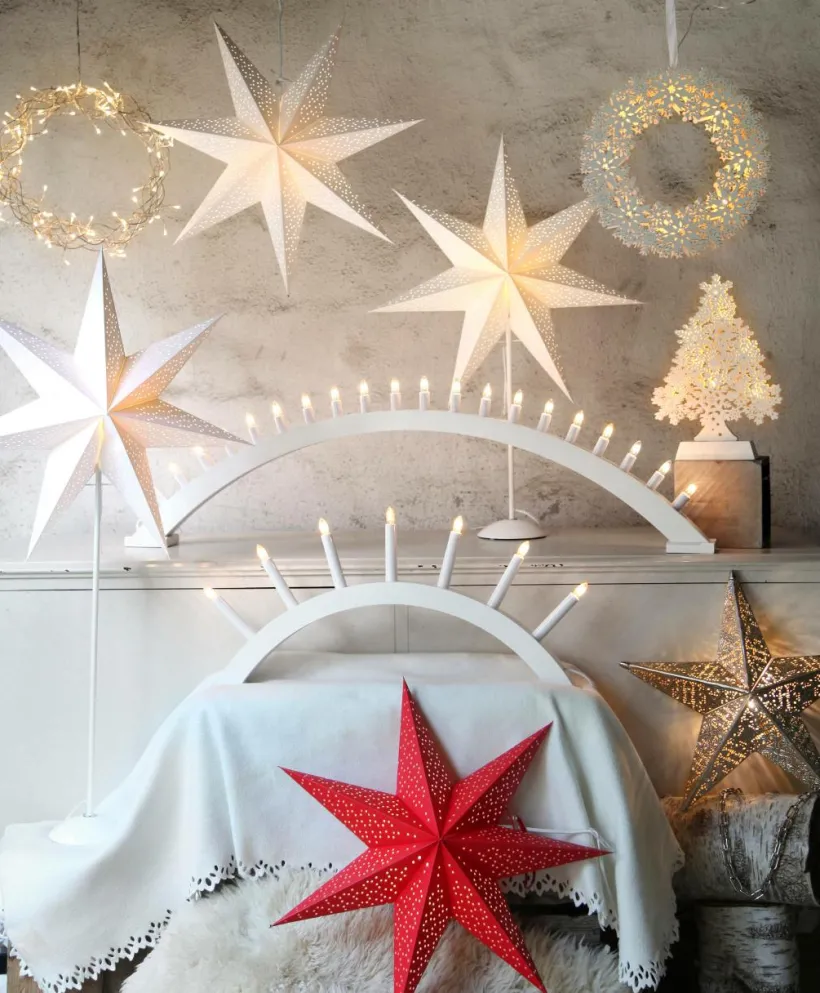 Vit pappersstjärna med fina små prickiga mönster. Mönstret skapar ett elegant och unikt utseende. Stjärnan placeras fint i fönstret som en vacker dekoration.E14-sockel, ljuskälla ingår inte. Vit anslutningskabel, 350 cm. Diameter 54 cm och djup 16 cm. Ljuskälla ingår ej. Ingen strömbrytare. Max effekt 25W.
