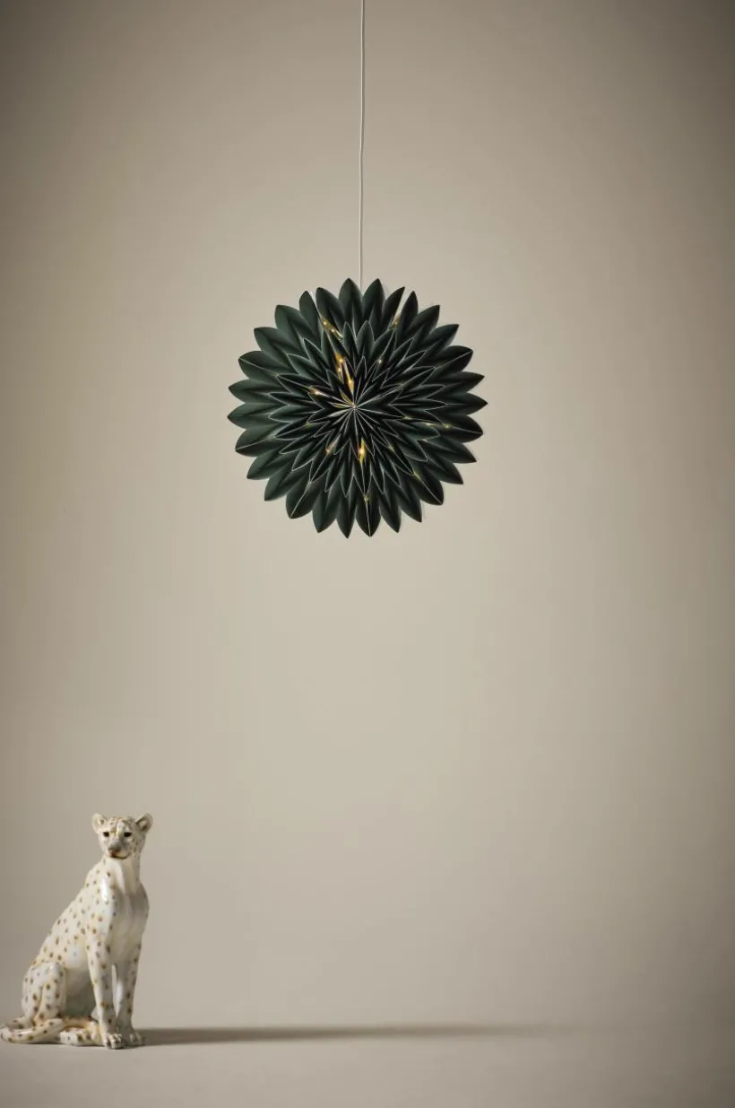Julstjärna av papper, formen har inspiration från en blomma. Kanske näckrosen varit förebild? AGENA är mysig och lyser upp ditt fönster i vintermörkret. Lamphållare med vit plastsladd ingår. Viss montering krävs. Monteringsanvisning medföljer.