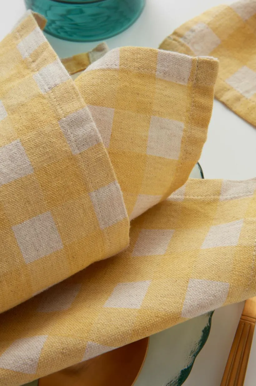 4-pack servetter i bomullsmix med lin inblandat som ger stadga åt tyget. Servetterna har tryckt rutmönster som är både klassiskt och fräscht.