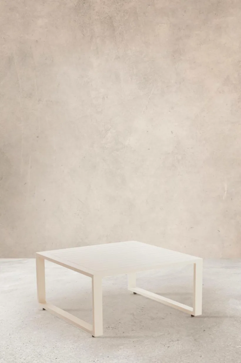 Beskrivning: Kvadratiskt soffbord av pulverlackerad aluminium.