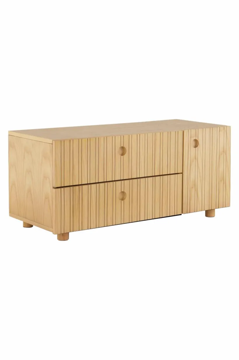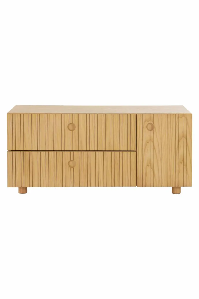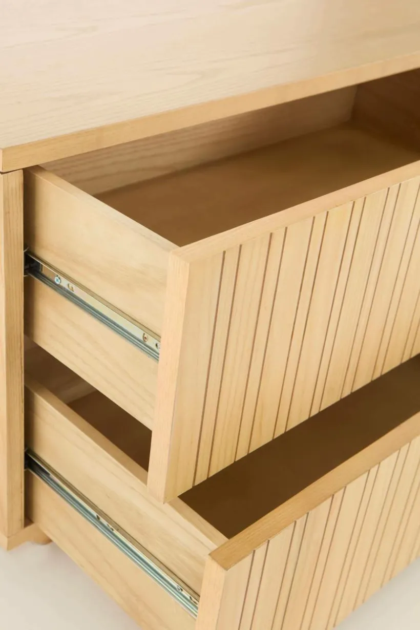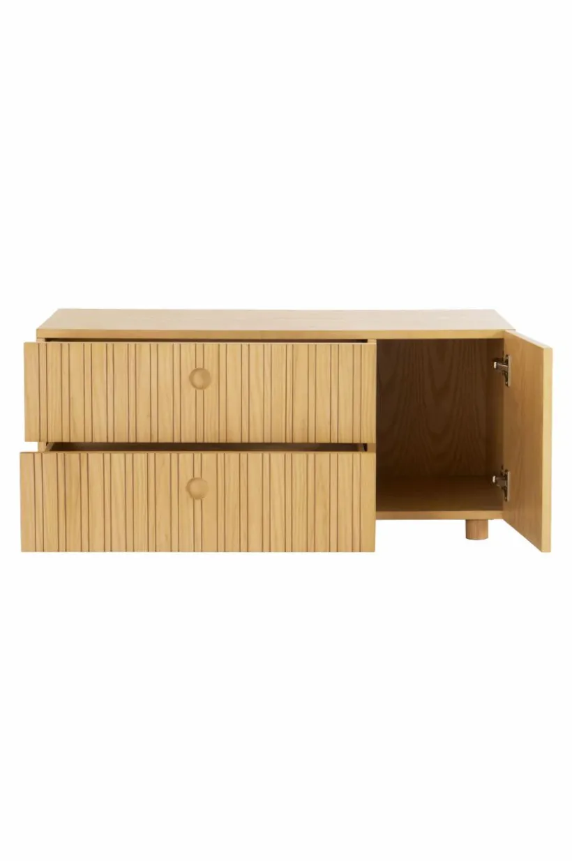 ALBA barnbyrå ger en fräsch och modern touch till alla barnrum. Denna vita byrå är tillverkad av robust MDF med eleganta bokben och erbjuder gott om förvaring med sina två lådor och ett rymligt skåp. Perfekt för att gömma undan leksaker, kläder och andra viktiga saker – en elegant lösning som både barn och föräldrar kommer att älska. Förhöj ditt barns utrymme med denna trendiga och funktionella möbel.
