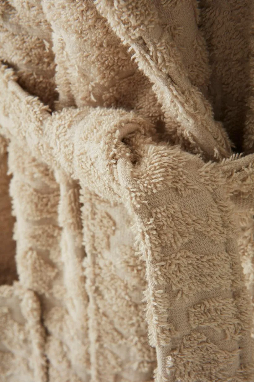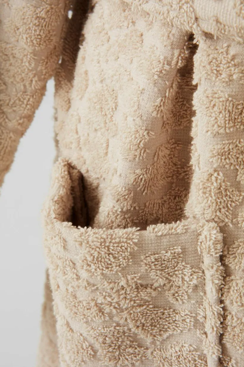 Badrock i härligt mjuk, enfärgad, ekologisk bomullsfrotté med jacquardvävt strukturmönster ton i ton på ena sidan och slät frotté på den andra. Badrocken är i klassisk modell med sjalkrage, två fickor och knytskärp i midjan. ALESSIO är en serie med riktigt mysig frotté som finns i mjuka färger och många olika delar. ALESSIO finns för hela familjen, även till de minsta barnen. Frottén är av lyxig kvalité med hög gramvikt, 450 g/m². Längd S/M 115 cm, M/L 118 cm.