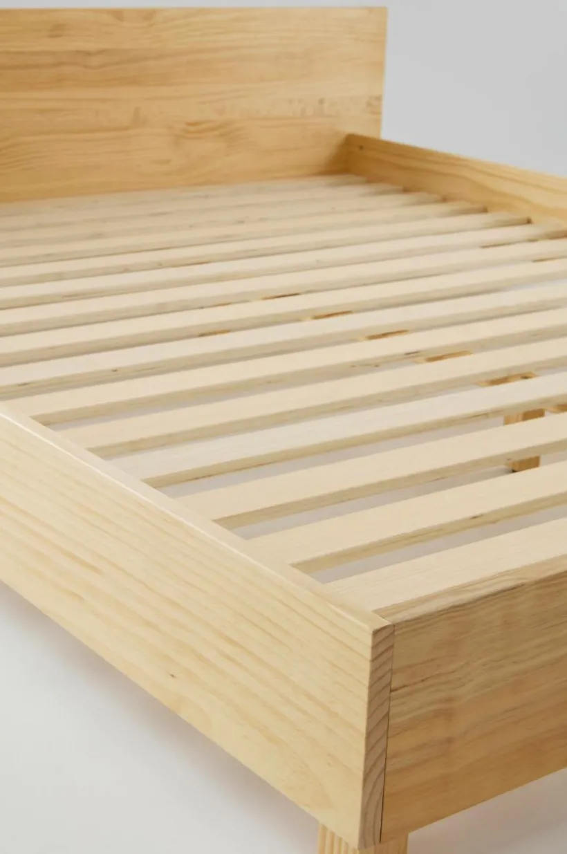 Sängramen ALLERUM ger en touch av nordisk elegans till din sovrumsinredning. Tillverkad av massivt furuträ, den betsade ytan framhäver den naturliga skönheten i ådringen och skapar en varm och inbjudande atmosfär. Den minimalistiska designen passar sömlöst ihop med olika interiörer och erbjuder en blandning av enkelhet och stil. Njut av den stabilitet och charm som denna sängram ger, vilket gör den till ett perfekt komplement till moderna hem.