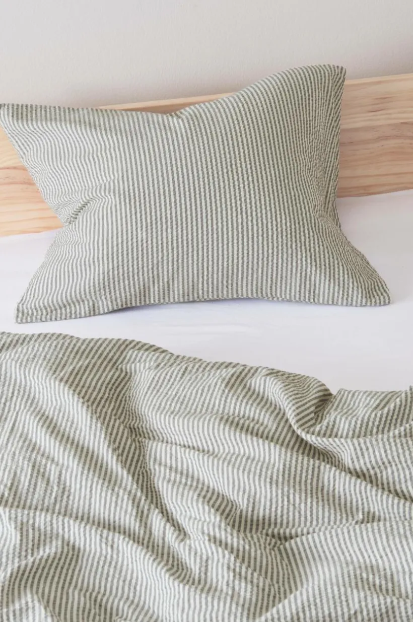 ALMA örngott ger en touch av romantik med sina garnfärgade ränder och mjuka bäckebölja. Den är förtvättad för mjukhet och ger en mysig, inbjudande känsla. Samordna med andra matchande föremål från ALMA-familjen för att skapa en harmonisk, kärleksfylld atmosfär i ditt hem. Perfekt för dem som söker värme och elegans.