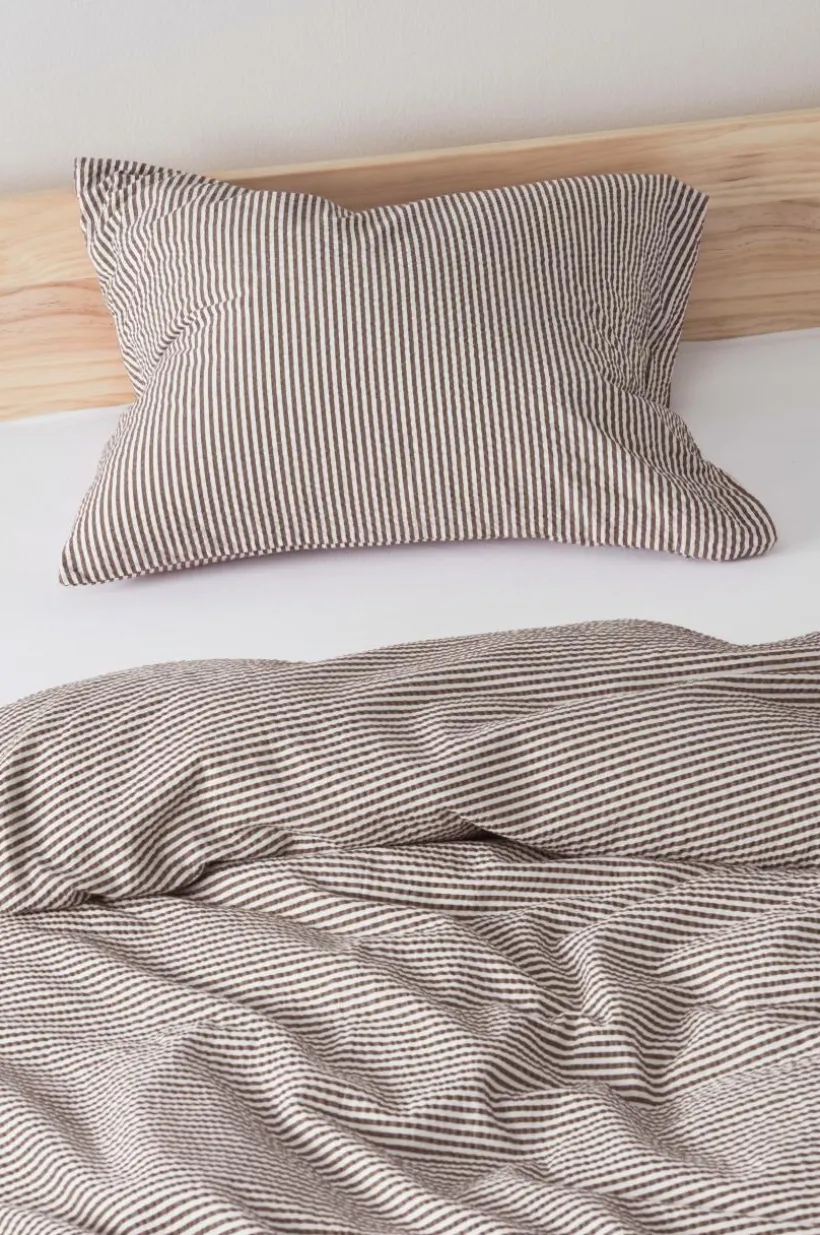 ALMA örngott ger en touch av romantik med sina garnfärgade ränder och mjuka bäckebölja. Den är förtvättad för mjukhet och ger en mysig, inbjudande känsla. Samordna med andra matchande föremål från ALMA-familjen för att skapa en harmonisk, kärleksfylld atmosfär i ditt hem. Perfekt för dem som söker värme och elegans.