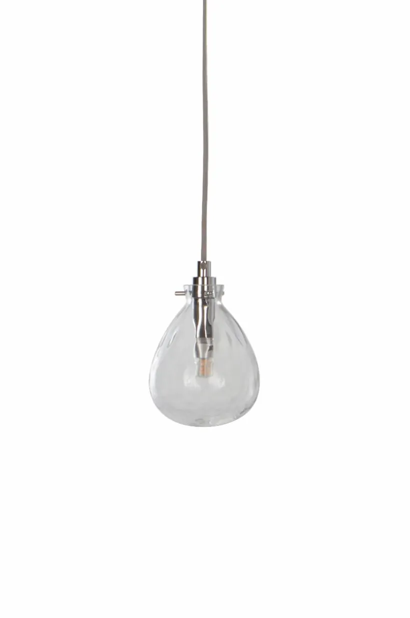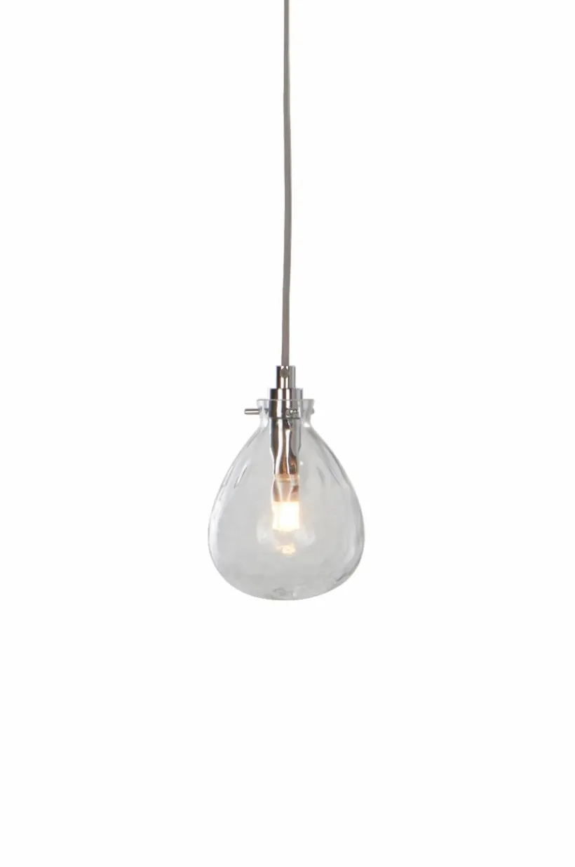 Fönsterlampa med en kupa av glas och kromade metalldelar. Grå tygsladd med mellanbrytare och väggkontakt, sladdlängd 3,5 m.