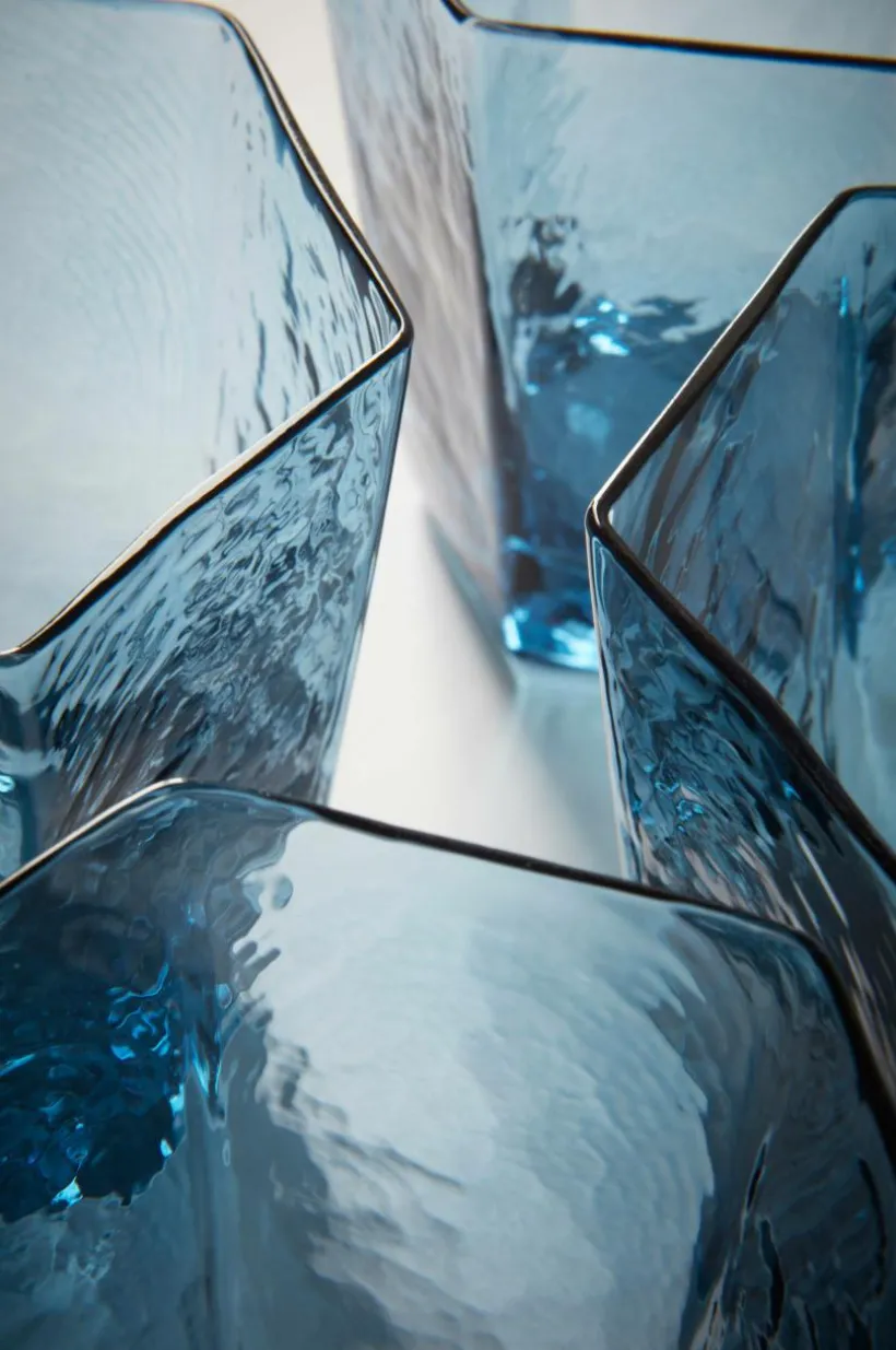 4-pack låga glas av kadmiumfritt glas. I serien AMORY är glasen 6-kantiga och har snygg, avsmalnande form. Serien förgylls av att glasets yta har oregelbunden struktur, kalla drycker känns extra läskande. Det låga glaset passar perfekt som vattenglas, ensamt eller bredvid vinglaset när du dukar. 38 cl/glas. Vikt 294 g.