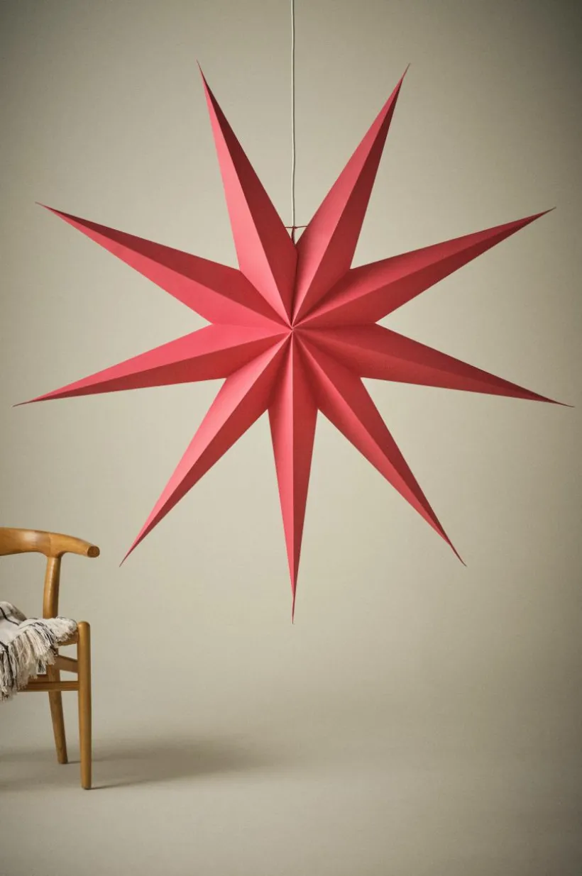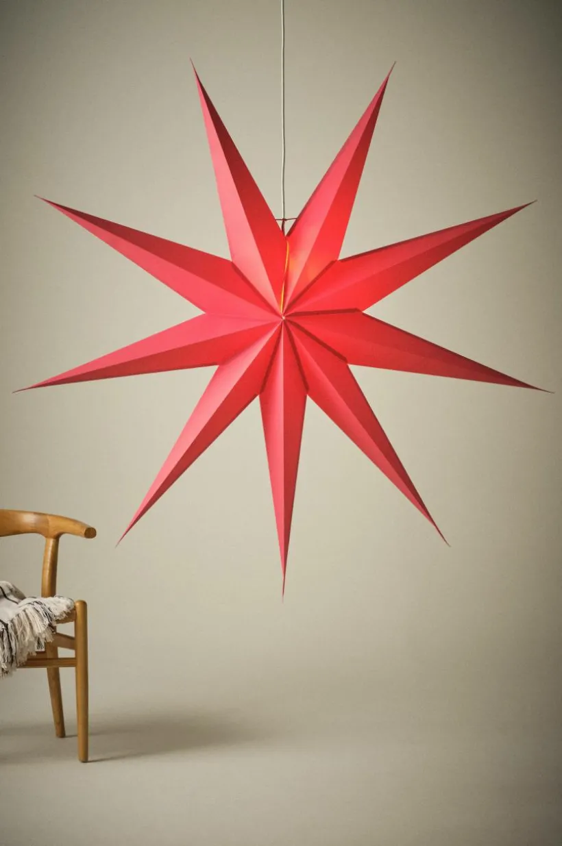 Förvandla ditt vardagsrum till ett vinterlandskap med ANDROMEDAs julstjärna. Denna majestätiska pappersstjärna sträcker sig 150 cm med nio fina spetsar. Inkluderar inte lamphållare. Lys upp julen med en touch av elegans.