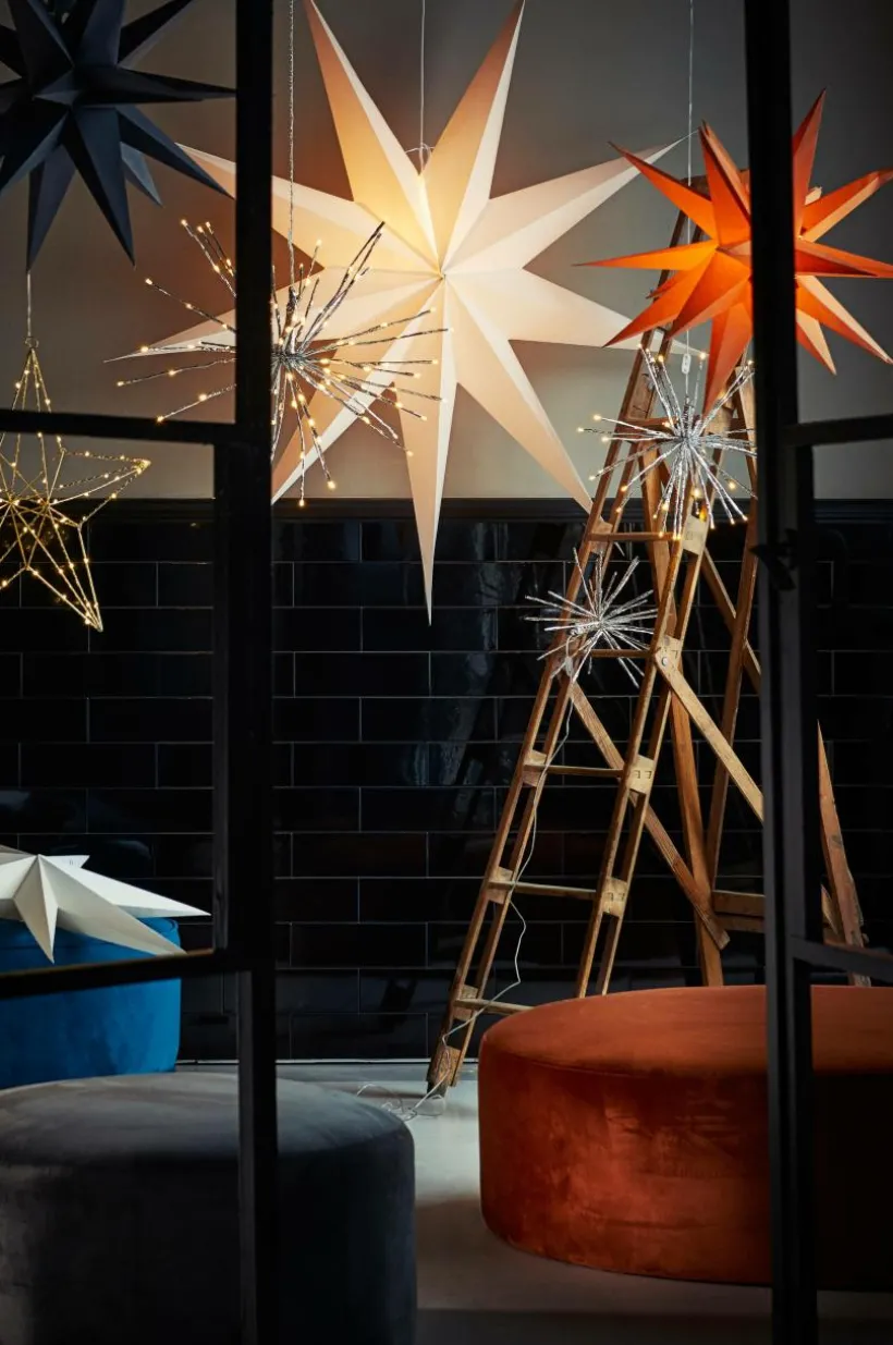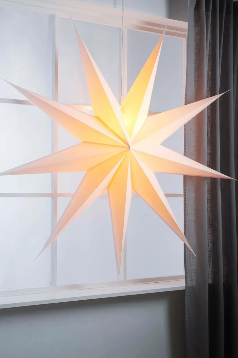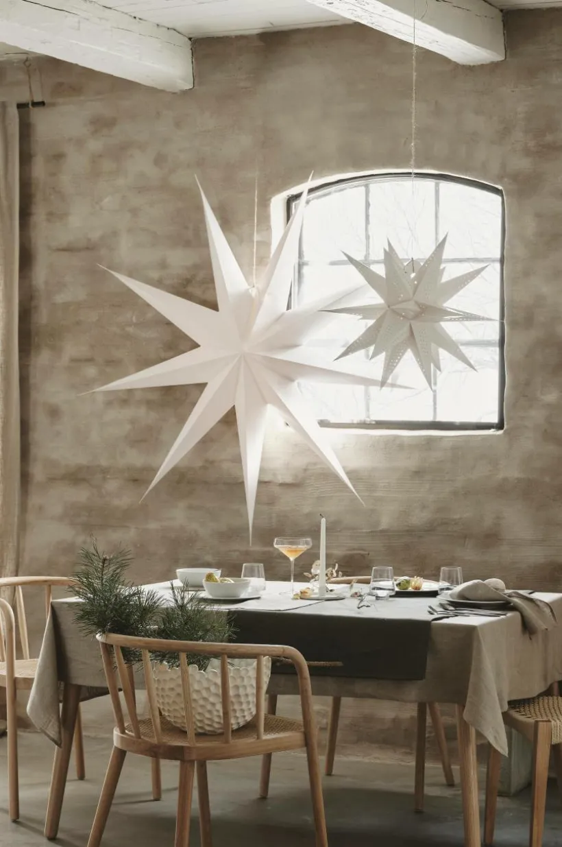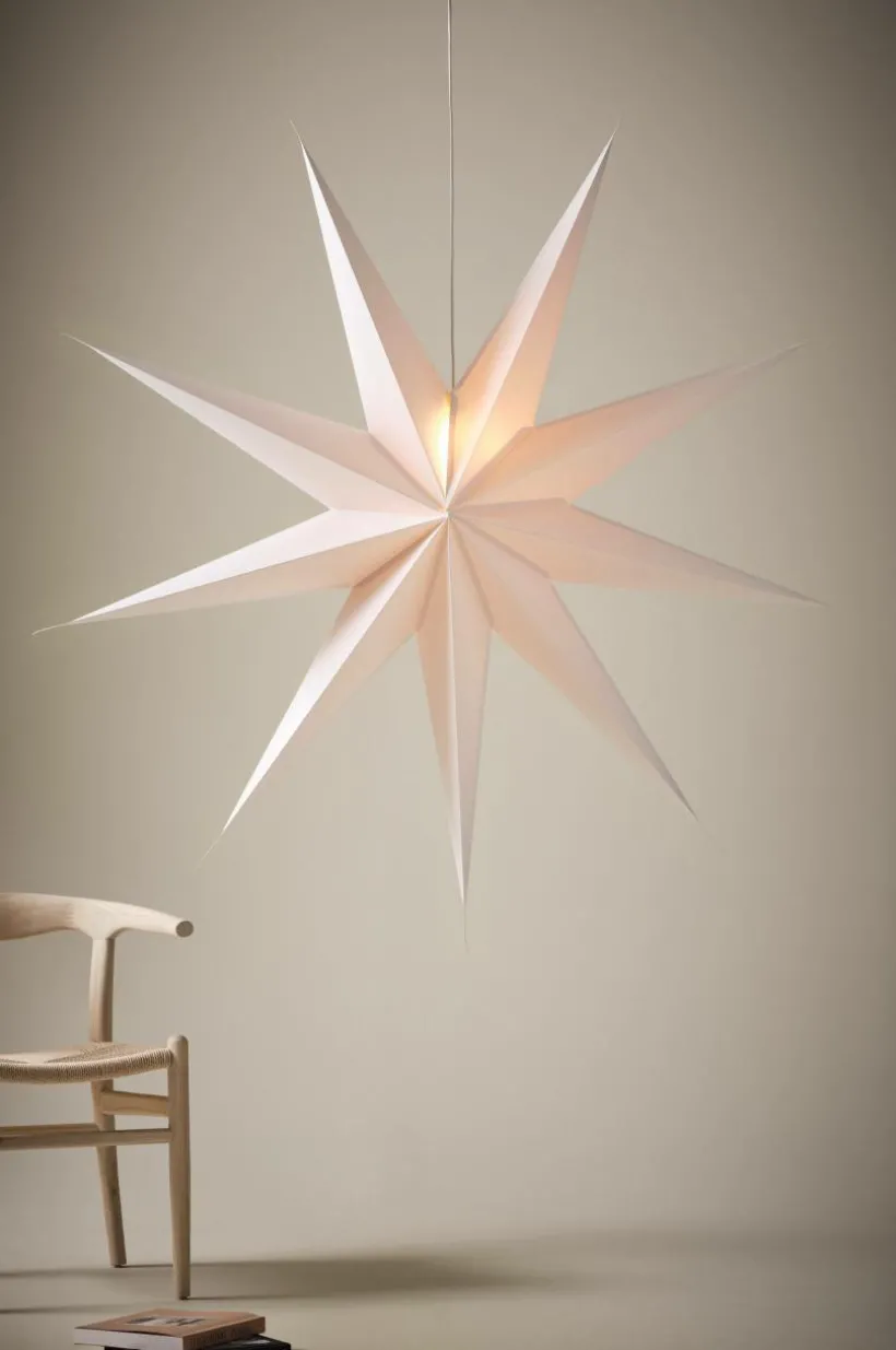 Förvandla ditt vardagsrum till ett vinterlandskap med ANDROMEDAs julstjärna. Denna majestätiska pappersstjärna sträcker sig 150 cm med nio fina spetsar. Inkluderar inte lamphållare. Lys upp julen med en touch av elegans.