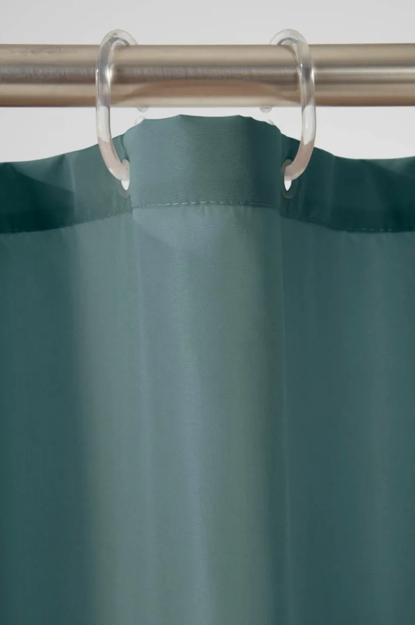 Enfärgat duschdraperi med tio matta öljetter upptill som matchar i färgen. Duschdraperiet är av polyester och kommer i många fräscha färger. Tyget har en beläggning som gör det vattenavvisande.