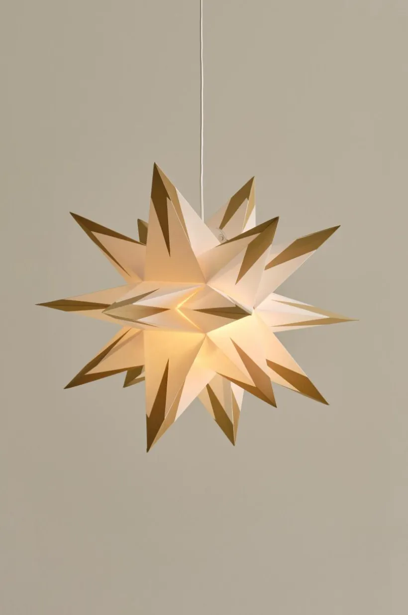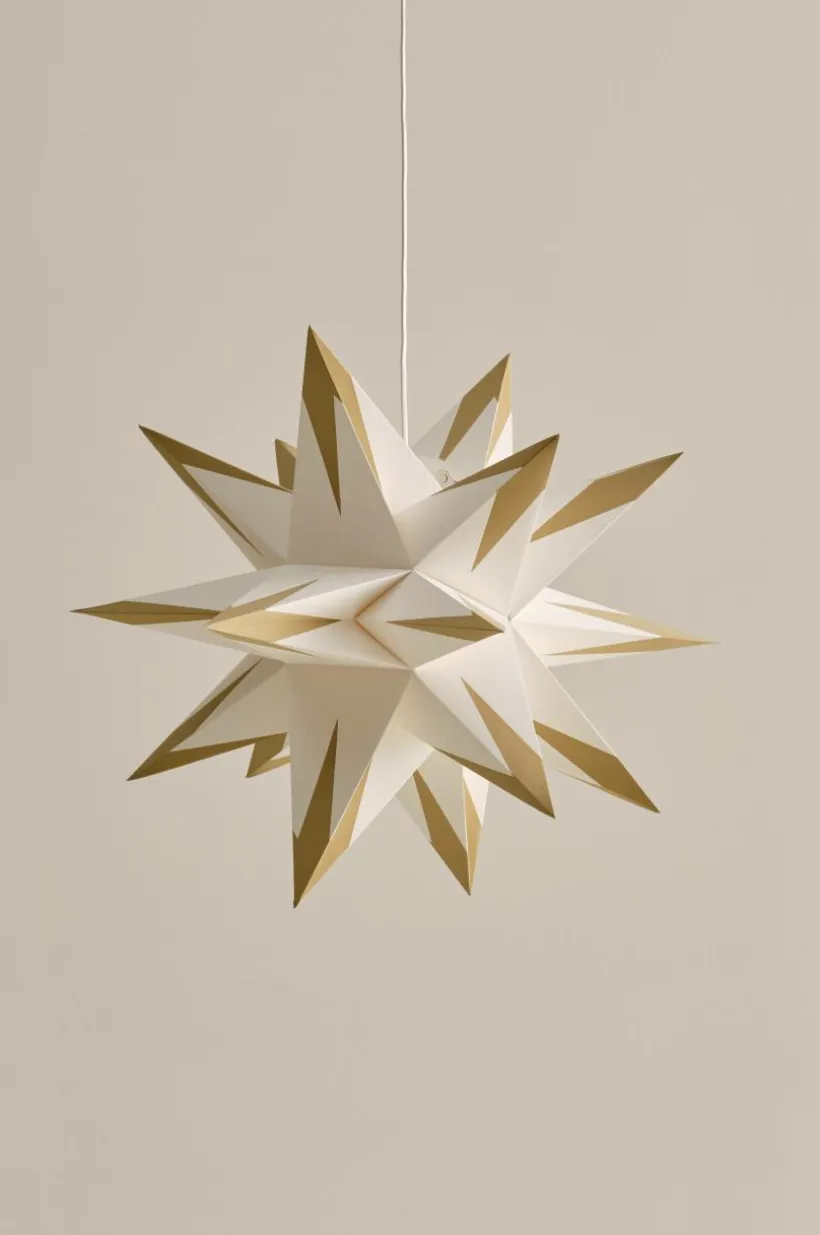 APEX är en vikbar fleruddig pappersstjärna. Formen är fantastisk och mycket dekorativ. Häng den i ett hörn, över en bänk eller ovanför ett bord för att skapa en vacker fokuspunkt. Den mycket speciella designen ger en sofistikerad men ändå modern känsla som kompletterar olika inredningsstilar.