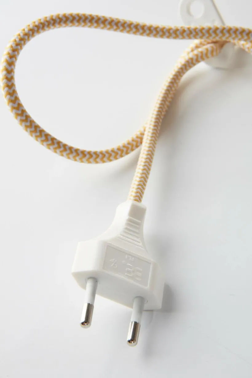 Fönsterlampa i klara, starka färger. Kupan är av metall och lampan har dekorativ textilsladd med väggkontakt. Fönsterlampan ARA sprider en fin ljuskägel ned på fönsterbrädan, bänken eller där du placerar den. Lampan är ojordad, klass 2. Väggkontakten är Europa-modell, det vill säga platt och med tunnare stift (4 mm).