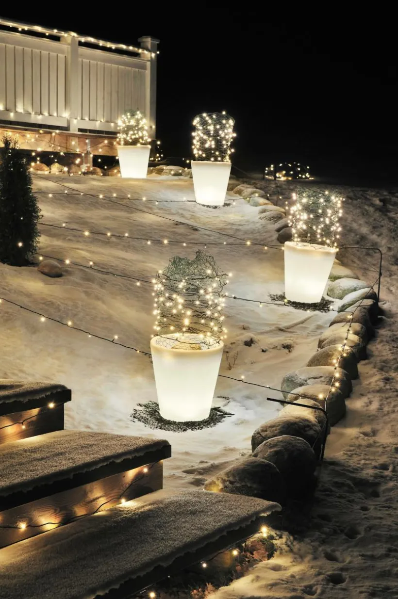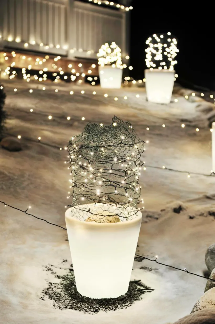ASSISI blomkruka för utomhusbruk kombinerar elegant design med LED-belysning, vilket skapar en charmig atmosfär i trädgården eller på uteplatsen. Denna mångsidiga kruka är perfekt för att visa upp växter dag som natt och ger en modern touch till utomhusinredningen. Dess mjuka sken framhäver växter på ett vackert sätt och förgyller kvällssamlingar med en gnutta magi.
