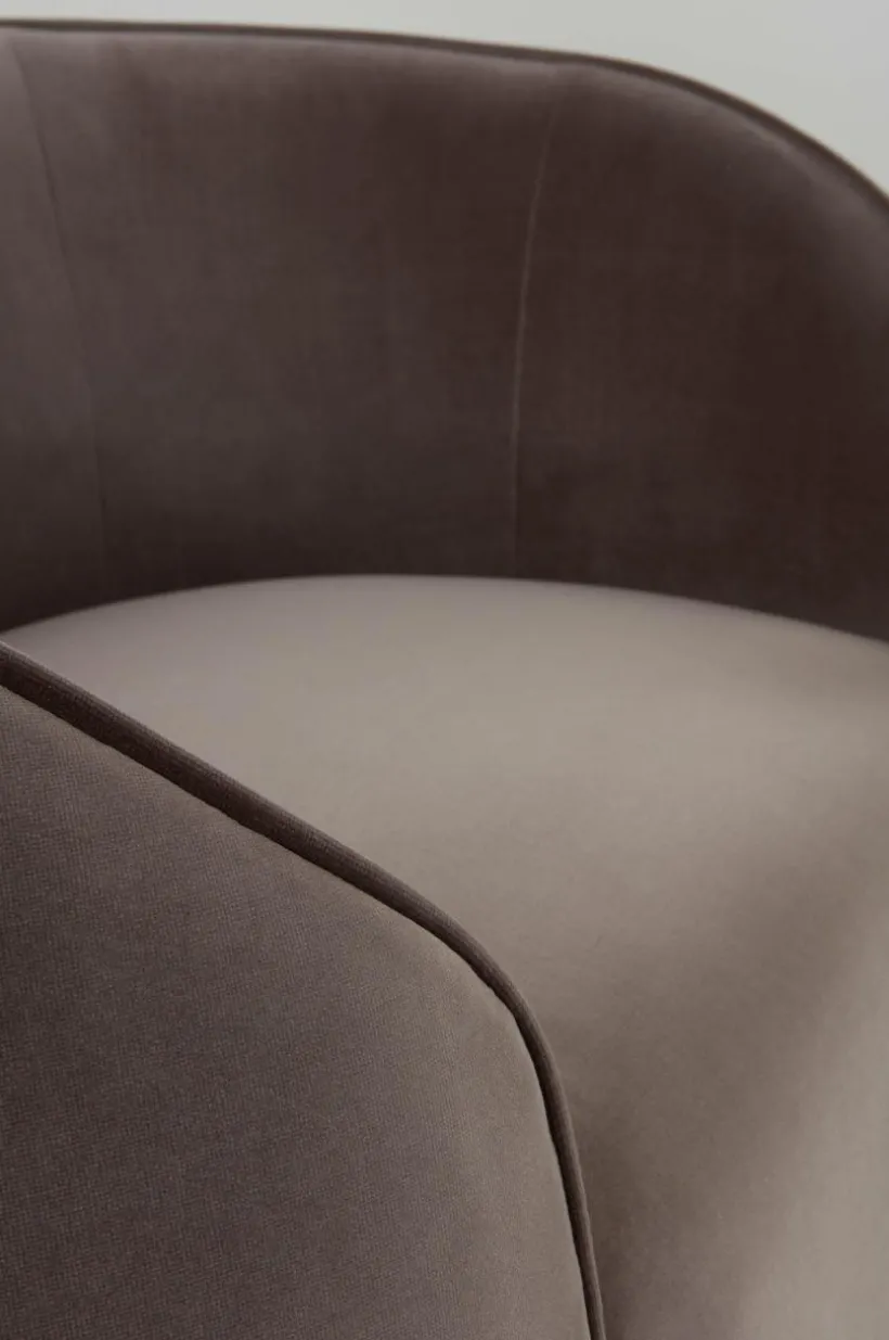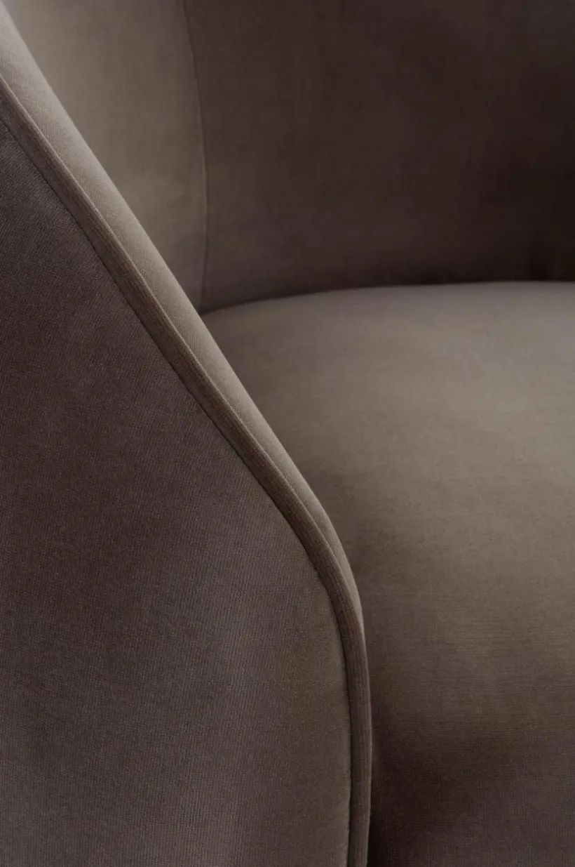 Rundad fåtölj med elegant sammetsklädsel och stabil stomme av FSC-märkt furu och FSC-märkt plywood. AUSTIN är en snygg fåtölj med fastare komfort som är uppbyggd av kallskum, zickzackfjädring och resårkärna. Klädseln är mycket tålig med en slitstyrka på 75000 Martindale. Modellen passar fint i sociala sammanhang, den speciella och flärdfulla fåtöljen är perfekt att sitta i när du vill umgås med vänner, kanske spela sällskapsspel eller ta en fika. AUSTIN kan placeras fritt i rummet, vilket skapar luftiga, intressanta miljöer runt den.
