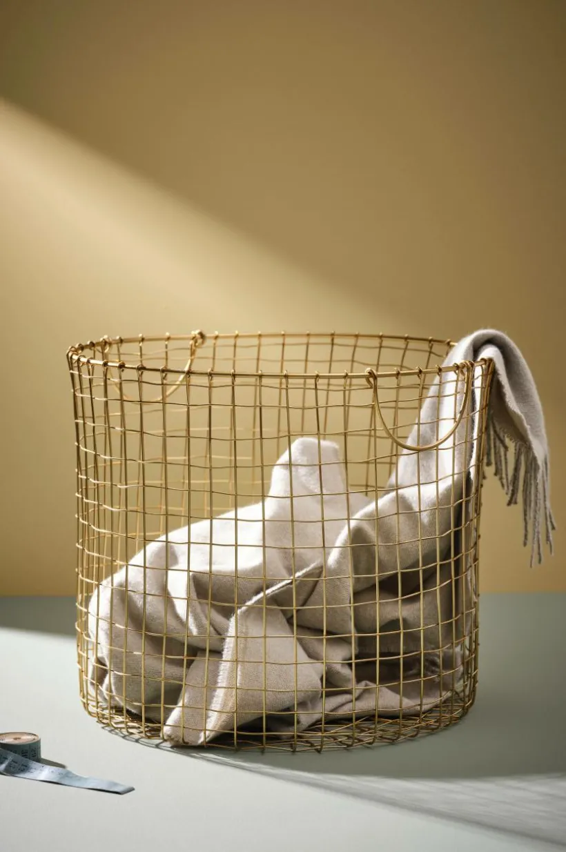 Trådkorg i målad tråd av järn med två praktiska handtag. Trådkorgen är handgjord, vilket gör varje exemplar unikt. Håll ordning i ditt hem med generösa, dekorativa trådkorgar. Lika fina i vardagsrummet som i hallen.