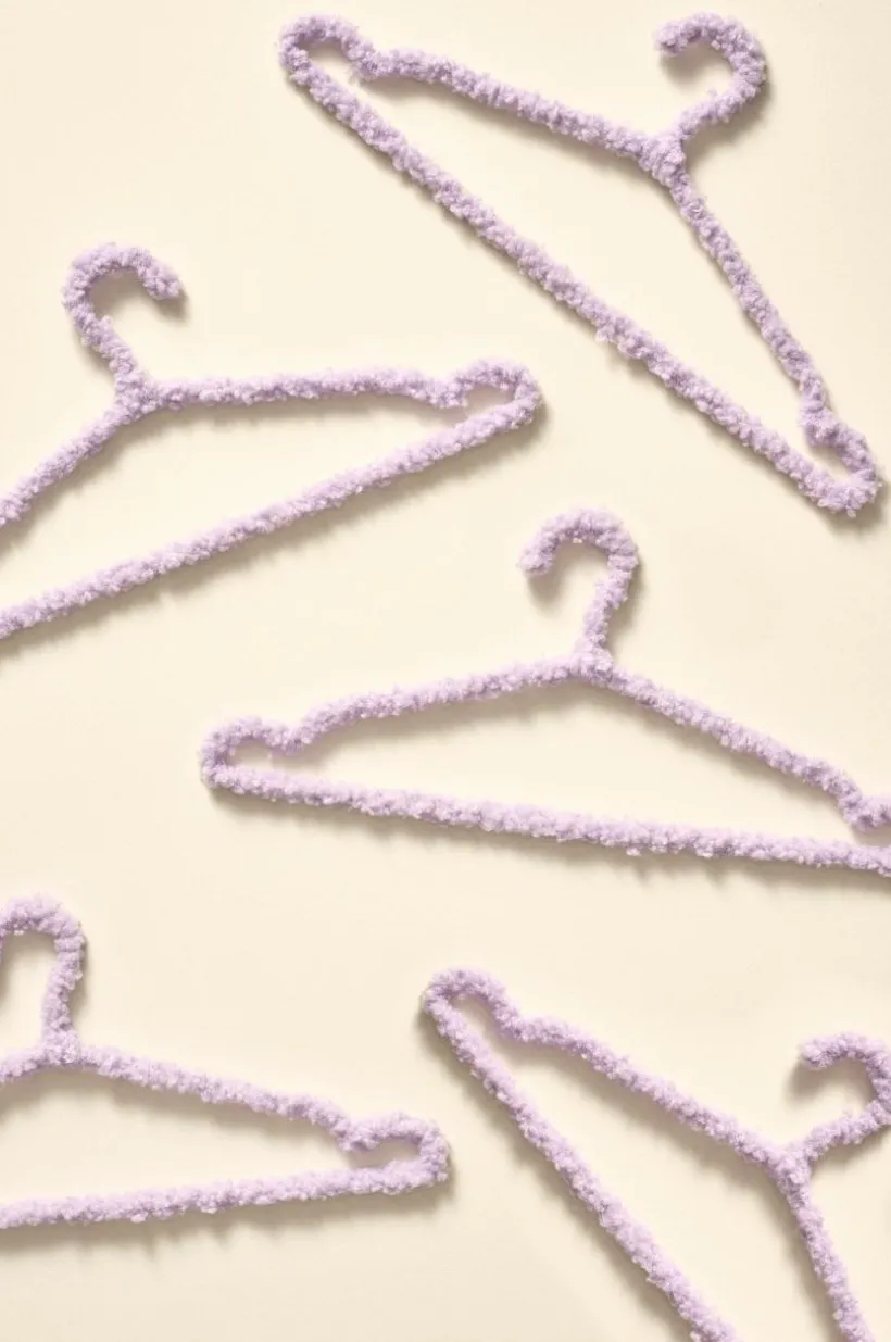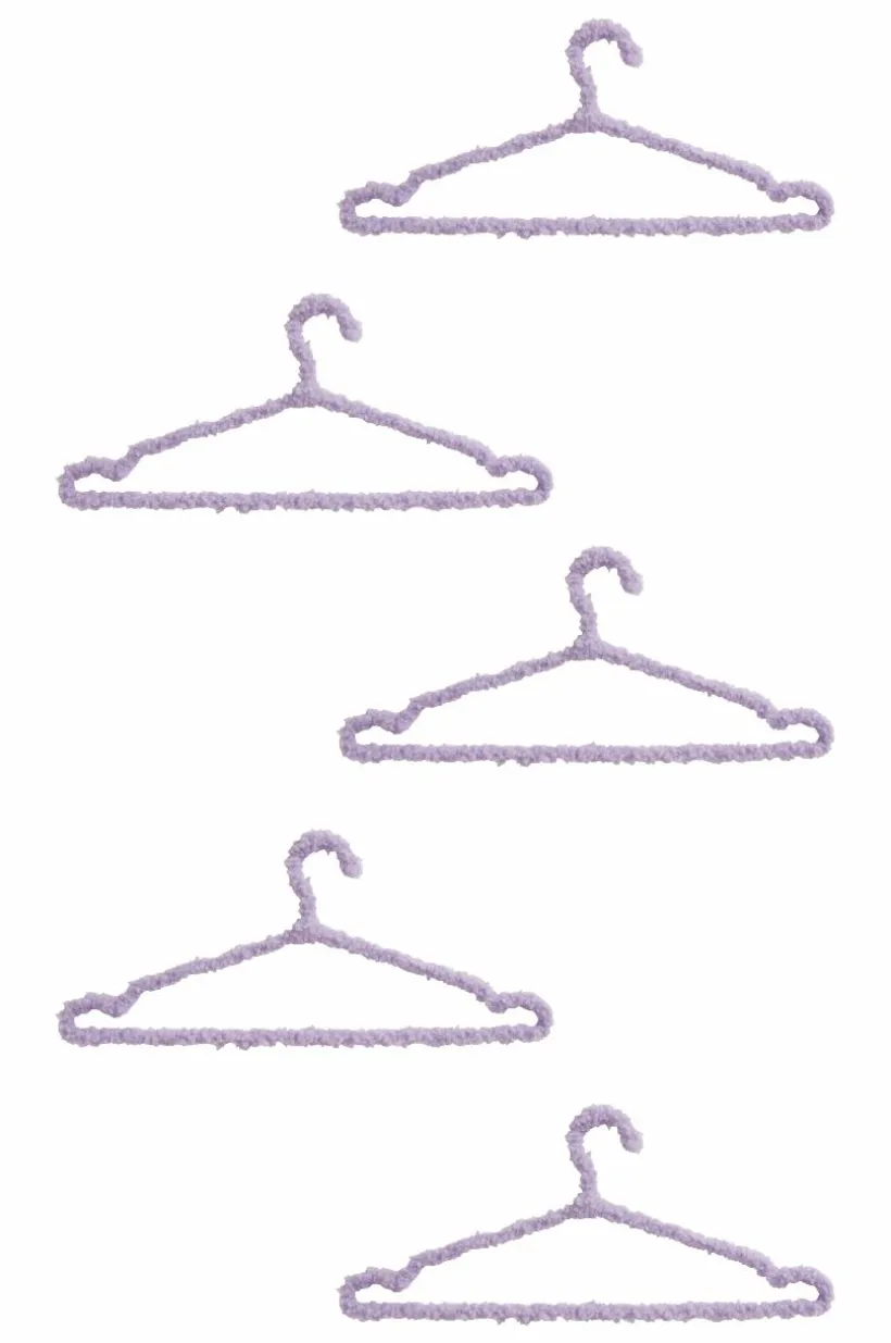 5-pack galgar av rostfritt stål, som klätts med mjuk och mysig teddy av polyester. Galgarna är snygga att ha på en hatthylla i hallen eller på en klädställning i sovrummet.