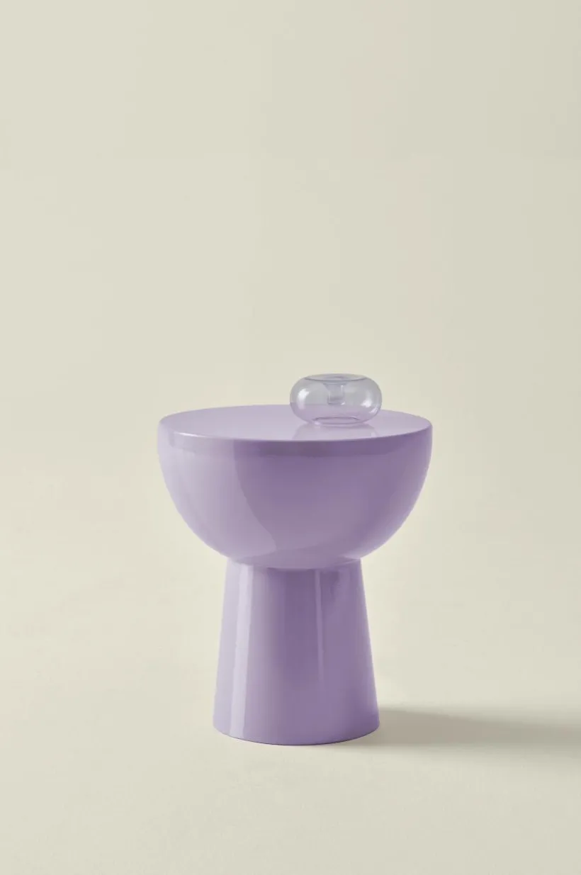 Runt sidobord med högglansig lack. Bordet är tillverkat av järn och dess ihåliga design ger praktisk funktionalitet utan att kompromissa med stilen. Tillverkat för inomhusbruk.