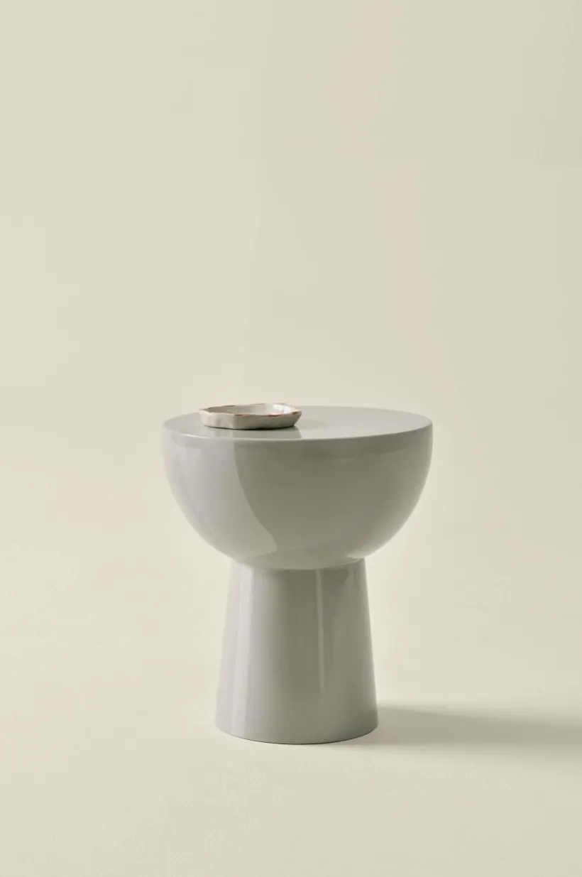 Runt sidobord med högglansig lack. Bordet är tillverkat av järn och dess ihåliga design ger praktisk funktionalitet utan att kompromissa med stilen. Tillverkat för inomhusbruk.