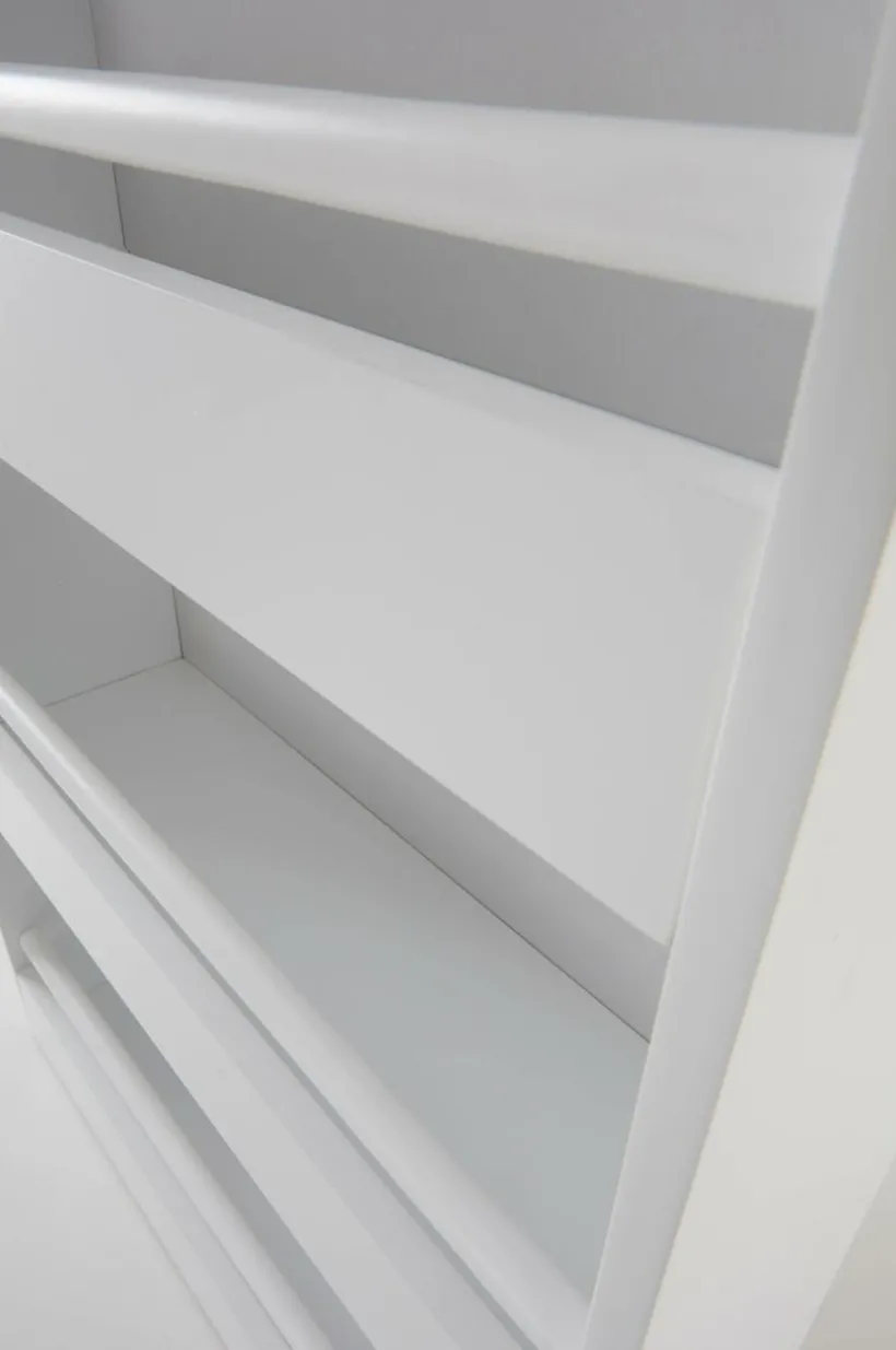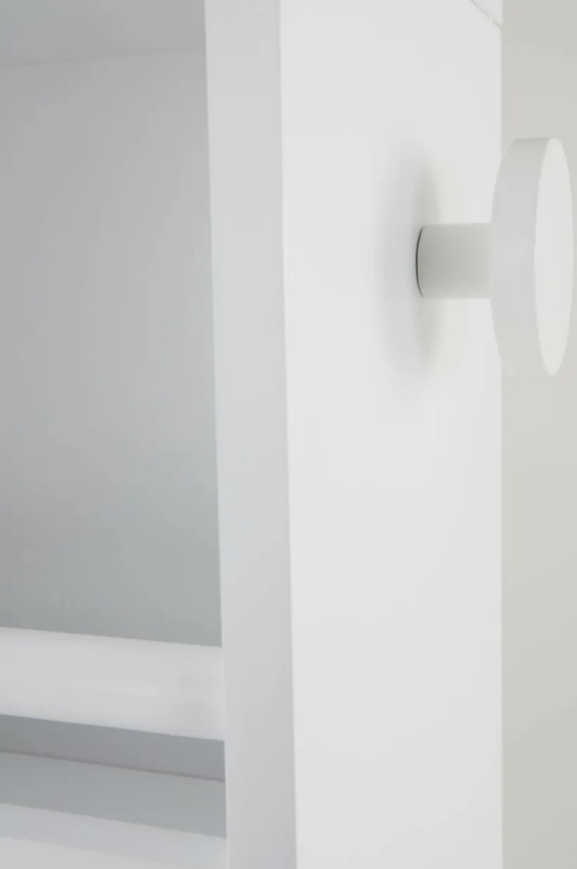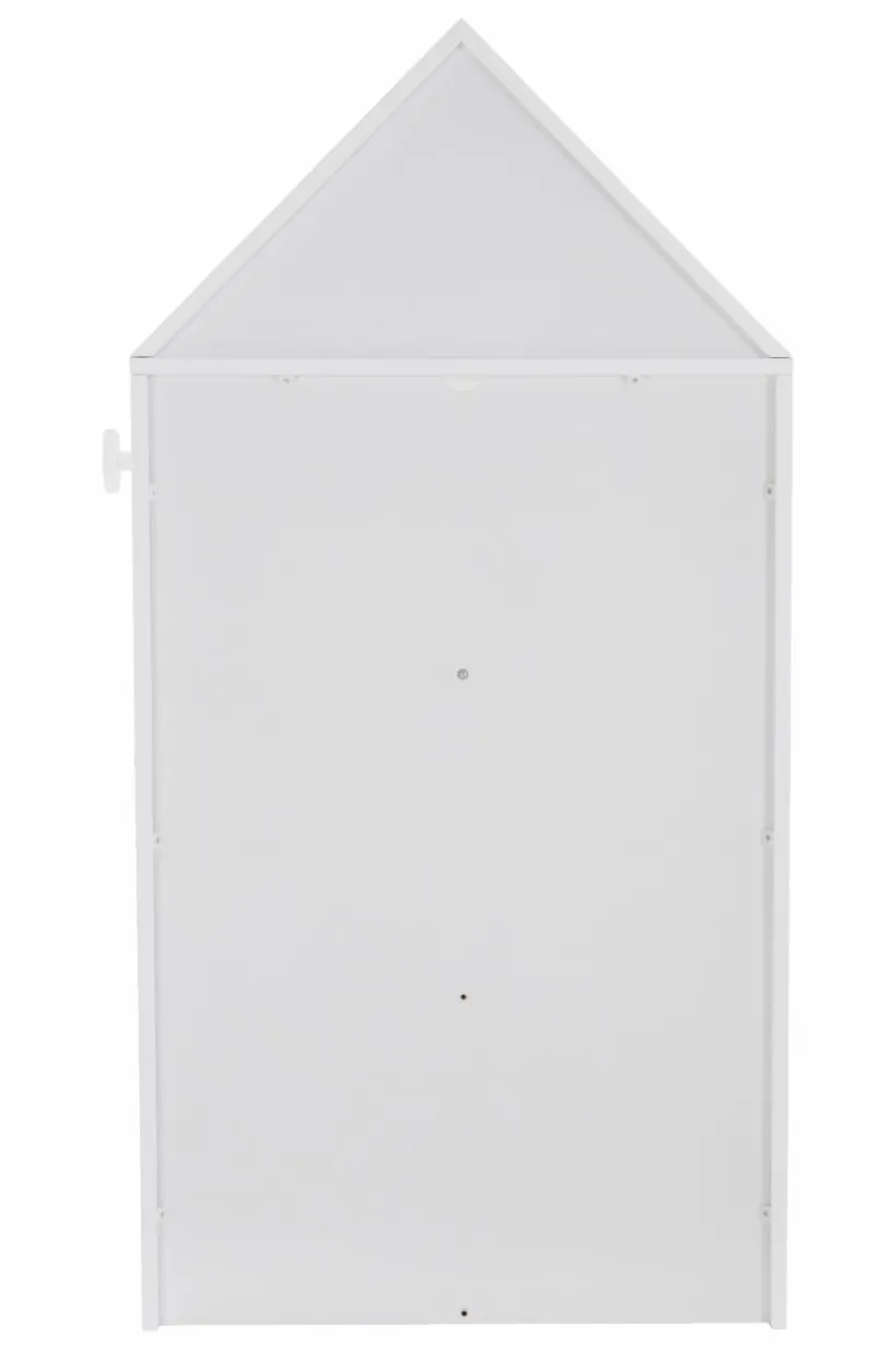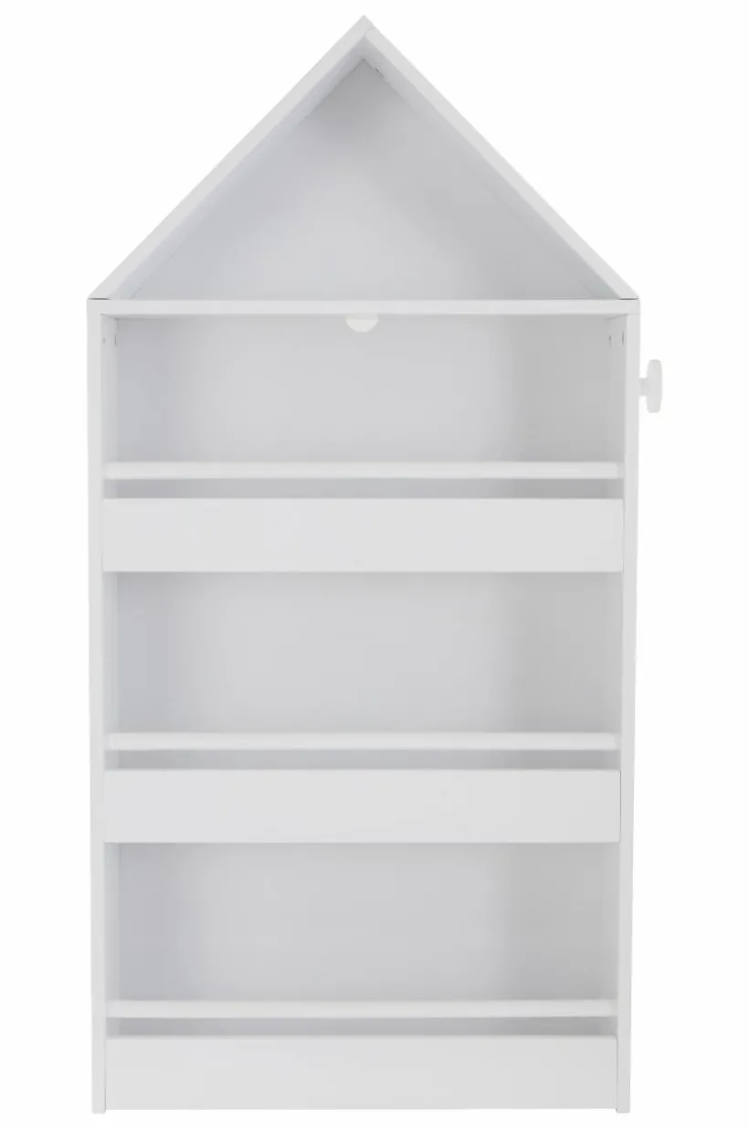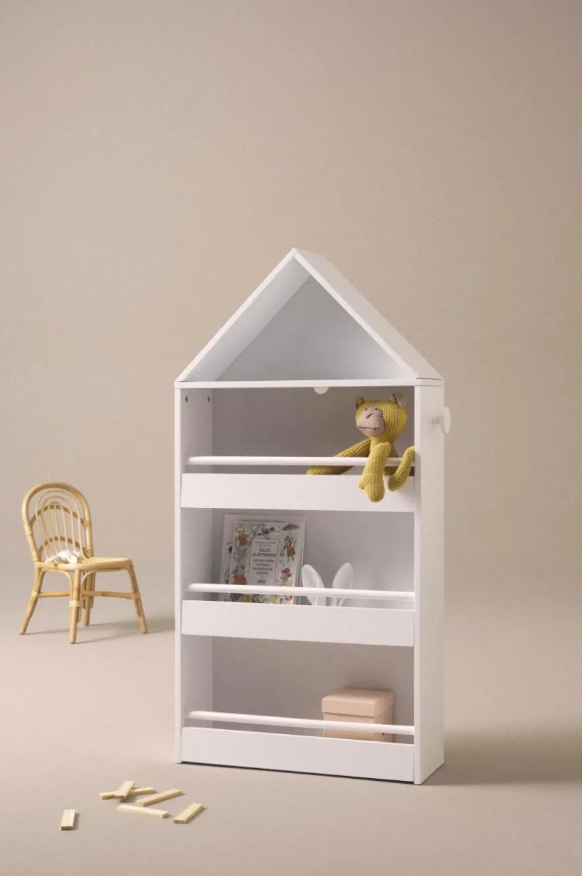 Barnhylla av FSC-märkt MDF som målats med vattenbaserad färg. Den charmiga, husformade hyllan inspirerar till lek och läsning med fyra fasta hyllor där leksaker och böcker kan samsas. Trähängaren på ena sidan passar att hänga morgonrocken, favorittröjan eller ryggsäcken på. Väggfäste ingår. Viss montering krävs. Monteringsanvisning medföljer.