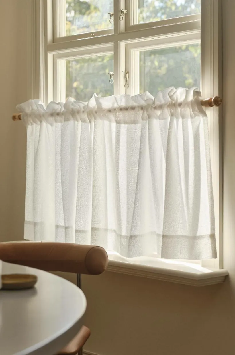 BELLA café gardin erbjuder elegant avskildhet utan att kompromissa med naturligt ljus. Den är tillverkad av lyxigt bouclétyg och draperas elegant över den nedre delen av ditt fönster, vilket ger en modern touch till din heminredning. Den praktiska toppkanalen gör det enkelt att montera gardinen på en gardinstång, samtidigt som den låter solljuset sila in över gardinens ovansida. Perfekt för mysiga kök eller vardagsrum när du vill att ljus och avskildhet ska samexistera på ett vackert sätt.