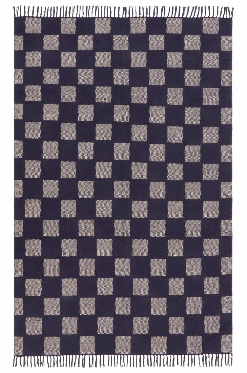 Handvävd bomullsmatta i mjuk och följsam bomull. BELON är schackrutig och har fin franskant längs kortsidorna. Det fina hantverket gör varje matta unik. Franslängd 8 cm. Tjocklek 0,5 cm. 1400 g/m².