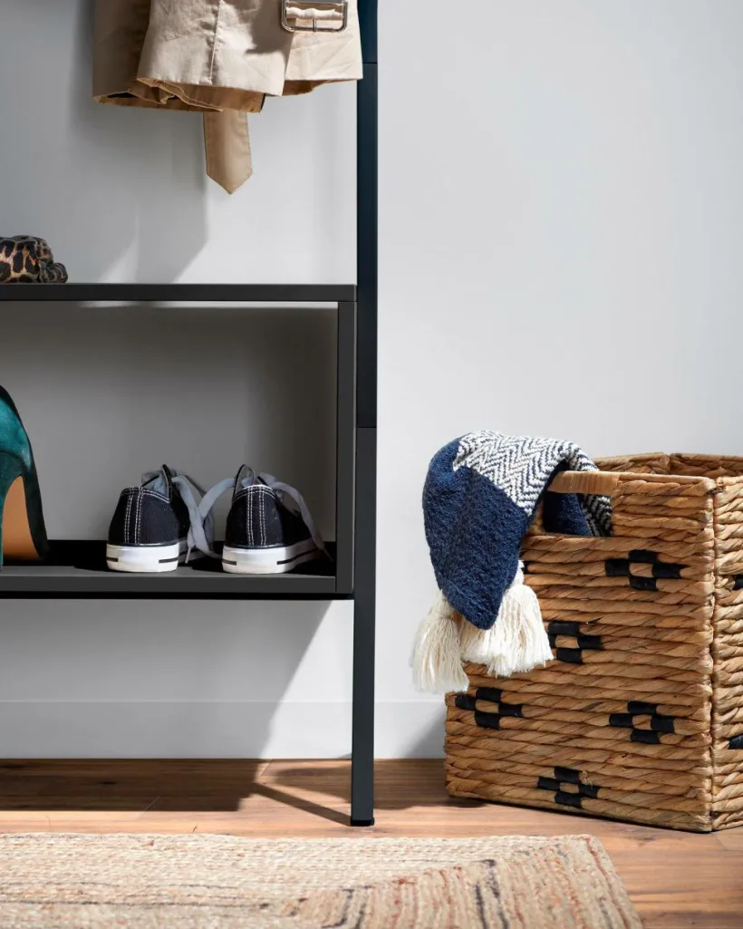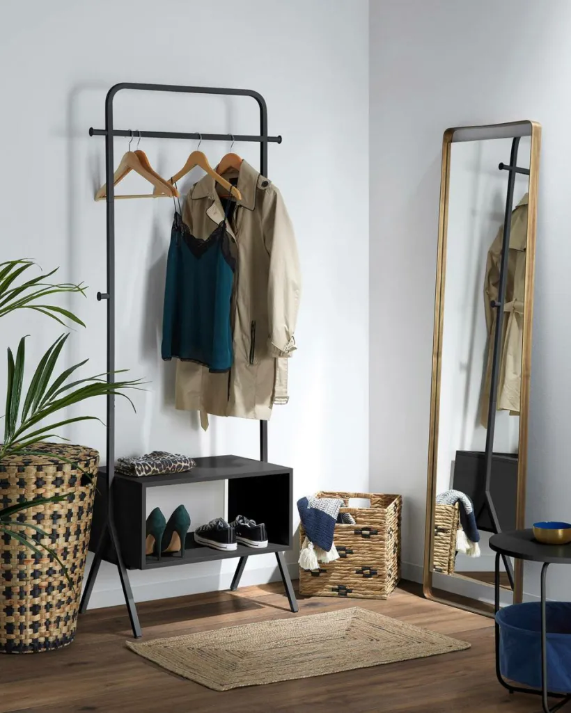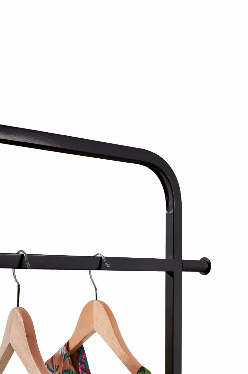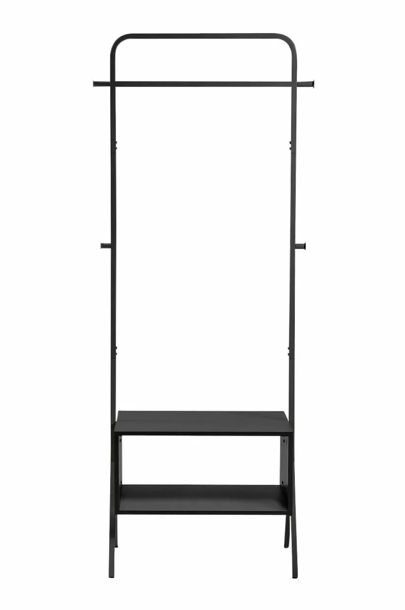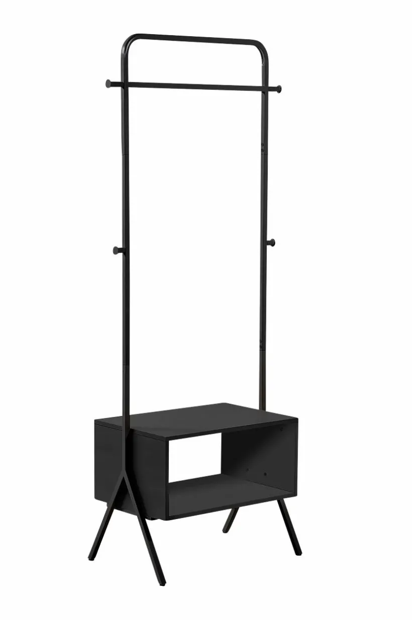 Klädhängare med stomme av stål med en praktisk, svartmålad hylla i botten. En stilren klädhängare som gör det enkelt och bekvämt att organisera dina kläder och skor.